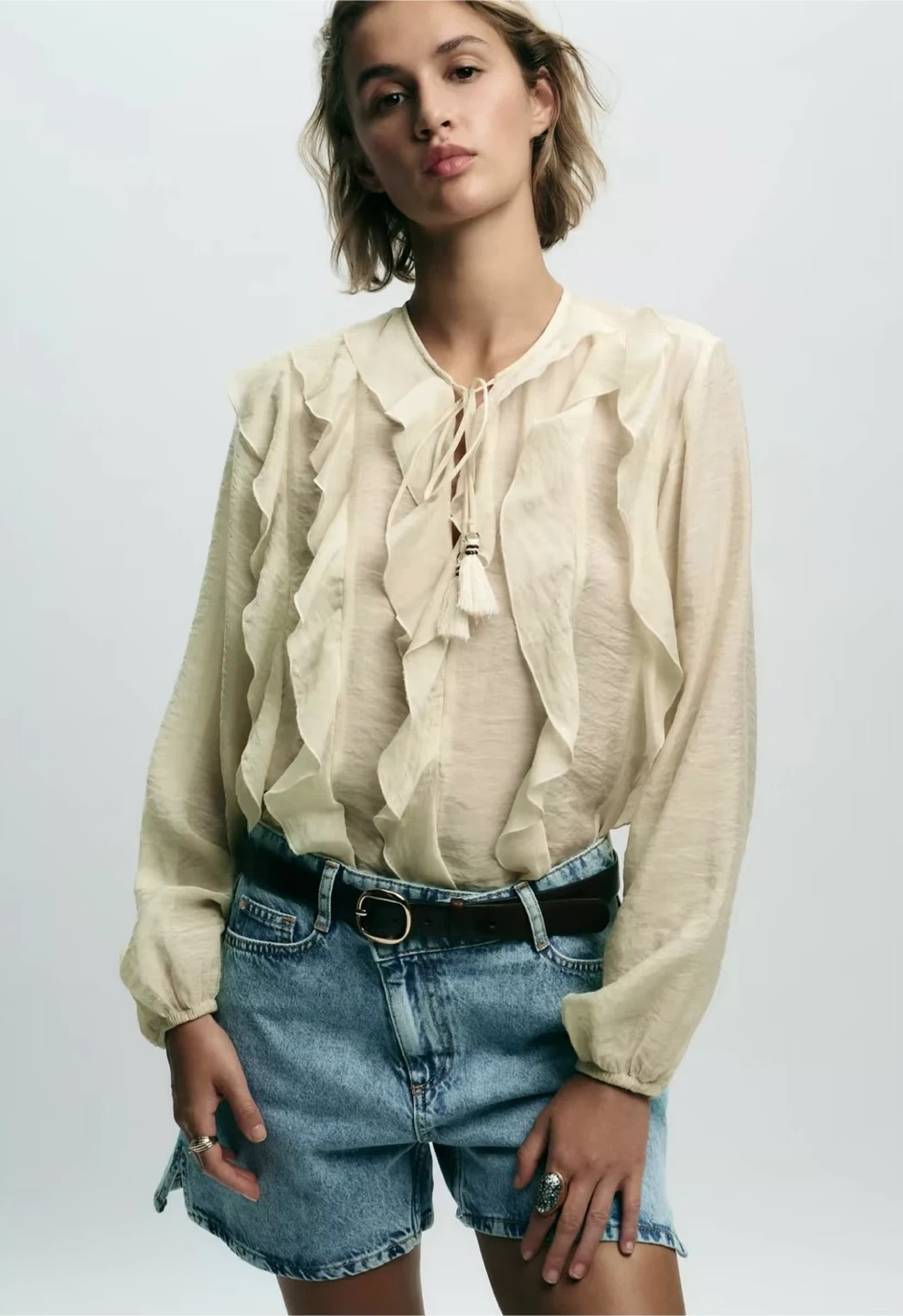 BOGO: Cute Women's Ruffle Neck Blouses Size S