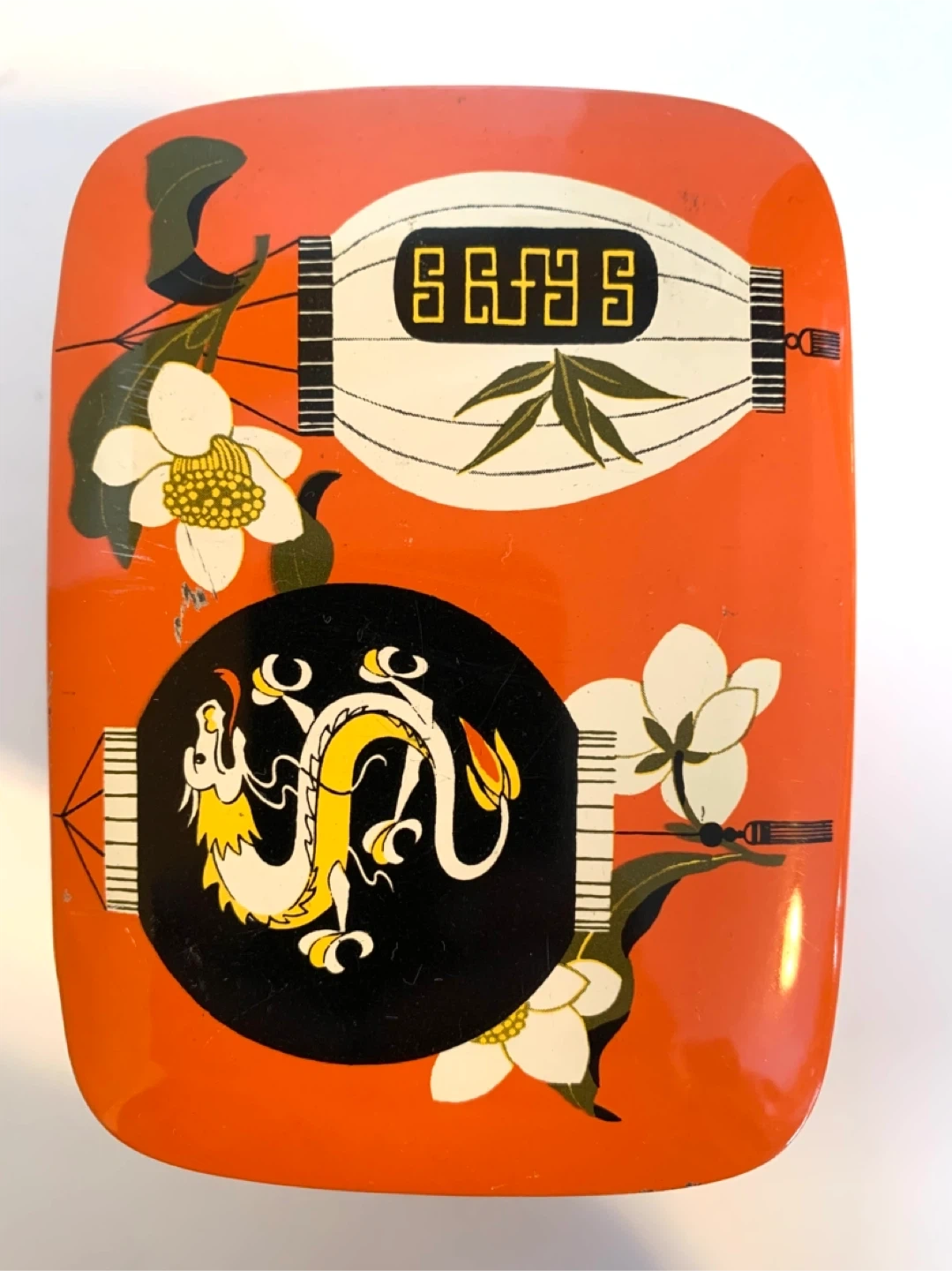 Vintage Decorative Tin with Lanterns and Dragon Design