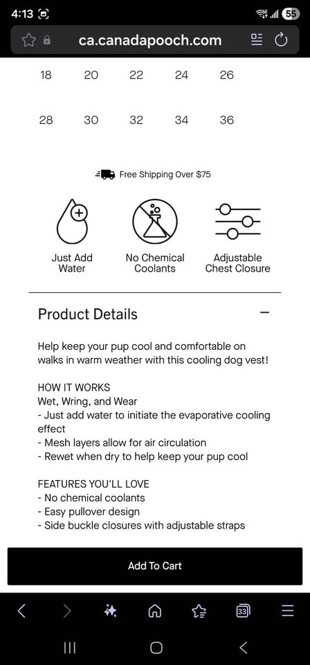 Buy & SellCanada Pooch Cooling Vest - Size 32Canada Pooch Cooling Vest - Size 32$25Excellent addition for your pup on those hot days. Does not work for dogs with undercoats.WHERE TO MEETCheck LocationView MapSELLERverifiedBrandyBirchland Manor750 reviews0 chats·0 favorites·2 viewsSEND CHAT TO SELLERHi Brandy! I’m interested in your listing.Hi Brandy! I’m interested in your listing.Get the Karrot app to chatSign In to chat