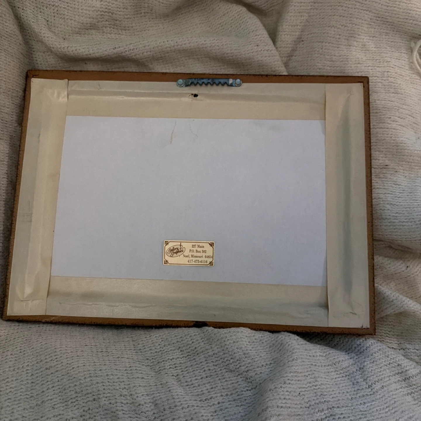 This vintage picture frame features a decorative gold-tone ornate frame. It holds two oval images of cherubic figures, with a charming maroon matting and heart accents. The back includes a label with manufacturer information.