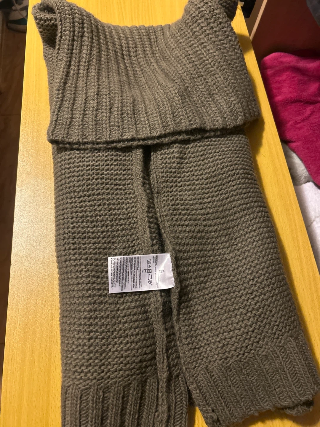 This Banana Republic sweater is made of Italian yarn. It's a chunky knit turtleneck in size XL. It's made in China. A warm addition for cooler weather!