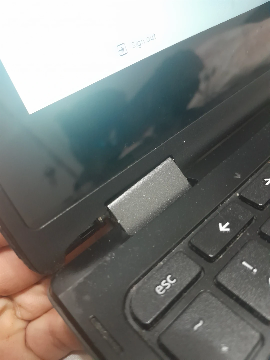 This is a black Acer Chromebook. It's a portable laptop for everyday use. It has a standard QWERTY keyboard layout. damage there you can see in the picture and it's a touch screen chromebook laptop