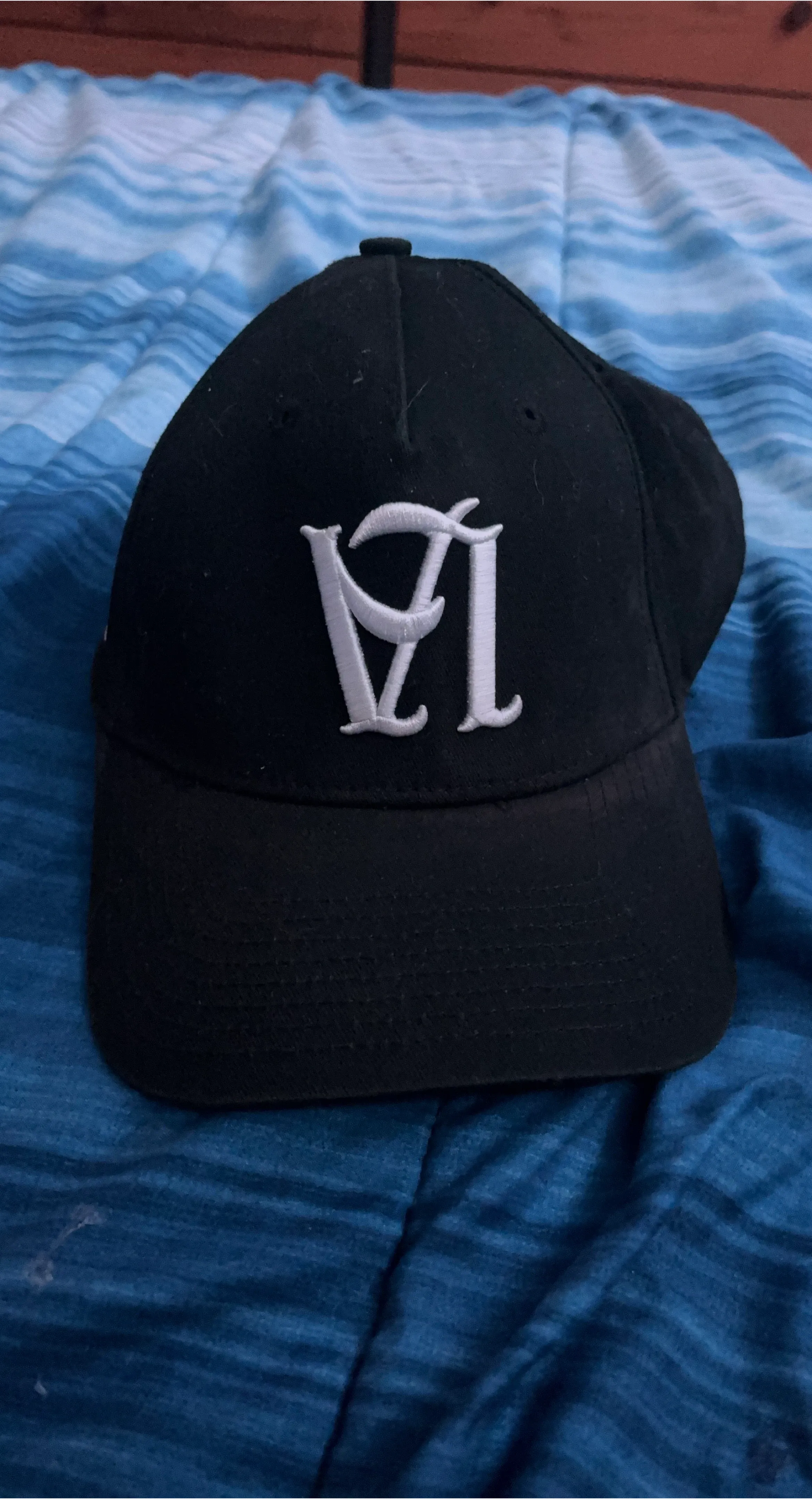 A black baseball cap by YOUNGLA. It's made of 100% cotton and was made in China. This cap features embroidered logos on the front and side.
