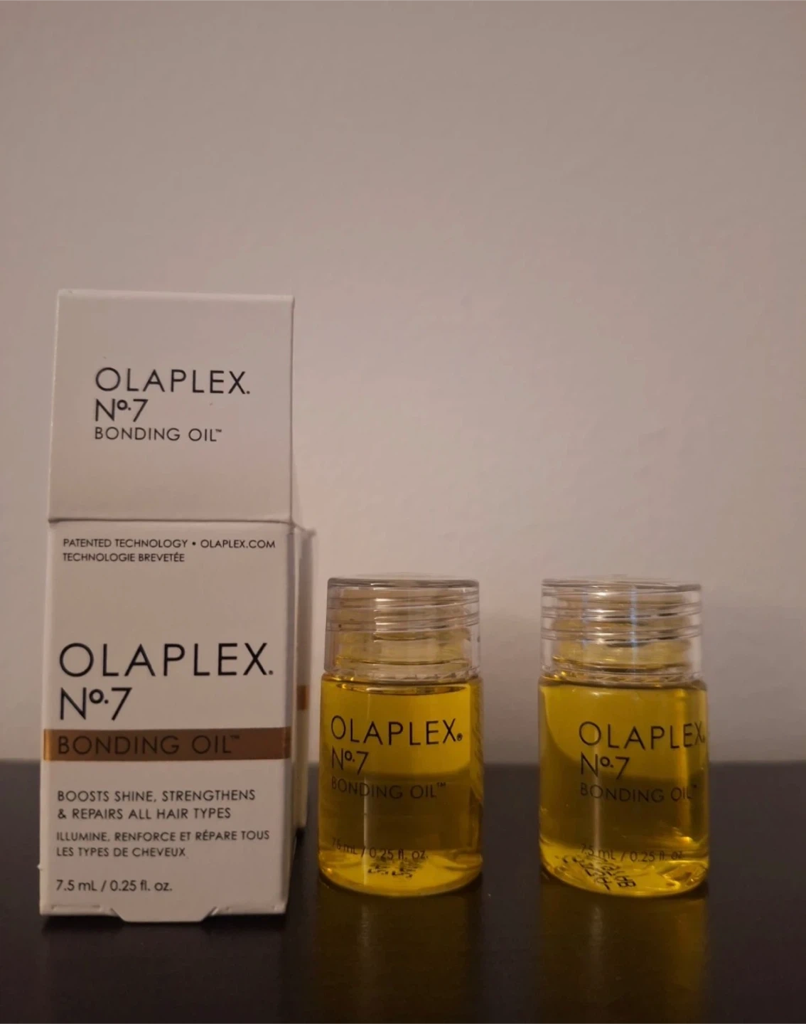 Buy & SellOlaplex No. 7 Bonding Oil (2 x 7.5 mL)Olaplex No. 7 Bonding Oil (2 x 7.5 mL)$15two Olaplex No. 7 Bonding Oils. Each bottle contains 7.5 mL (0.25 fl. oz.) of product. I bought the big size, so selling 2 travel sizes!ConditionNewBrandOlaplexWHERE TO MEETCheck LocationView MapSELLERverifiedEllaBloor-Yonge19815 reviews2 chats·2 favorites·24 viewsSEND CHAT TO SELLERHi Ella! I’m interested in your listing.Hi Ella! I’m interested in your listing.Get the Karrot app to chatSign In to chat