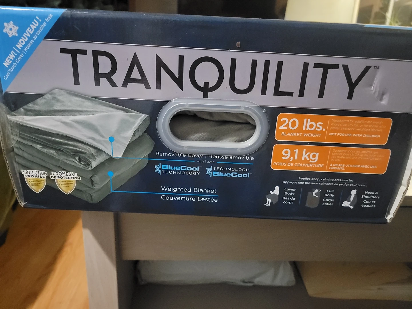 This Tranquility cooling weighted blanket comes with a washable cover. It features BlueCool Technology to help you relax and sleep rested. Multiple ties and loops prevent the blanket from shifting inside the cover.