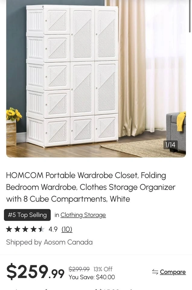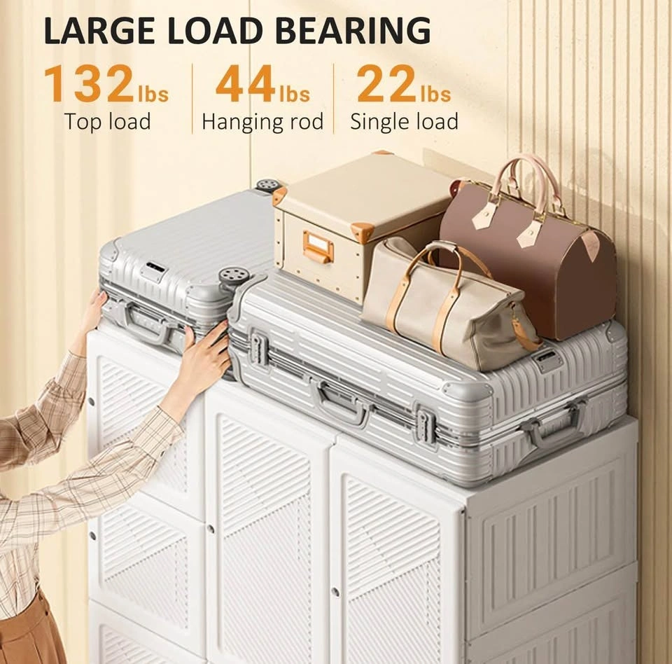 Brand New Portable Wardrobe Closet, Folding Bedroom Wardrobe, Clothes Storage Organizer with 8 Cube Compartments, White.