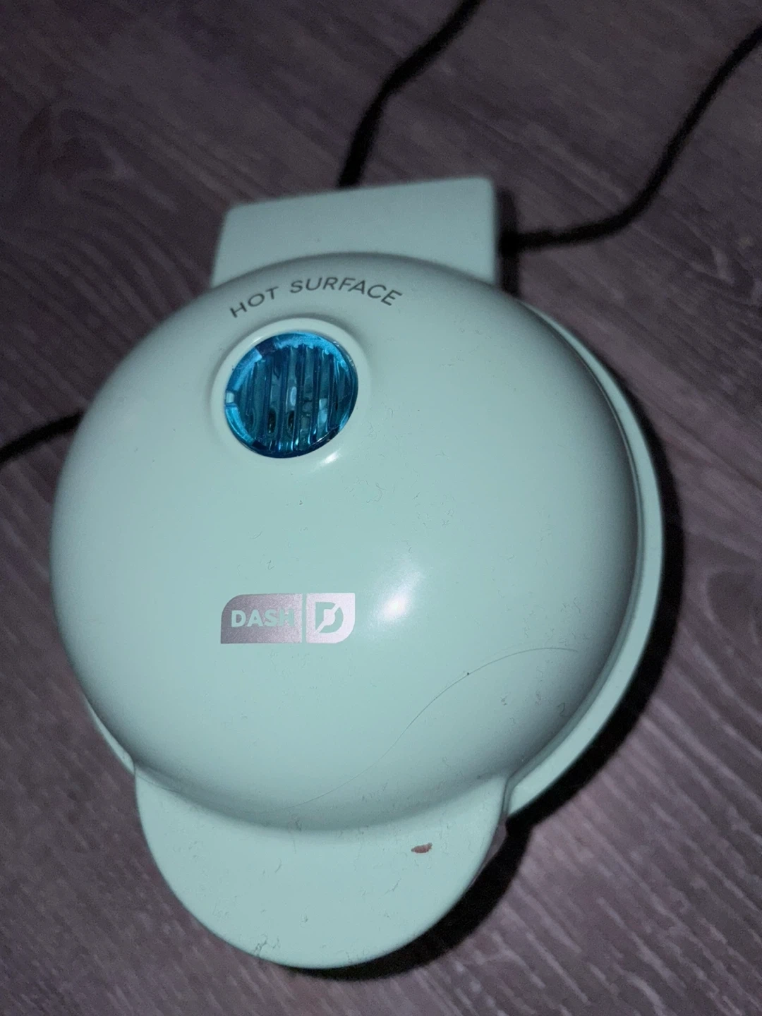 Whip up a quick waffle bowl with this aqua mini maker. It's compact and easy to use. Non-stick cooking surfaces make cleanup a breeze. Perfect for a single serving waffle bowls! Used once