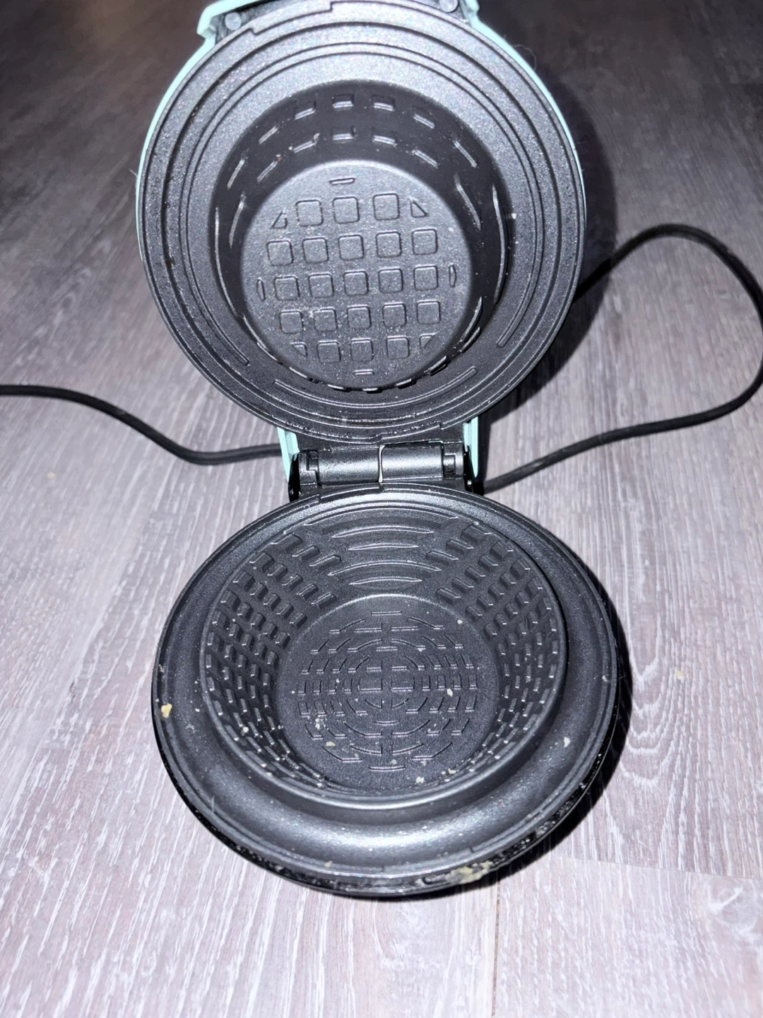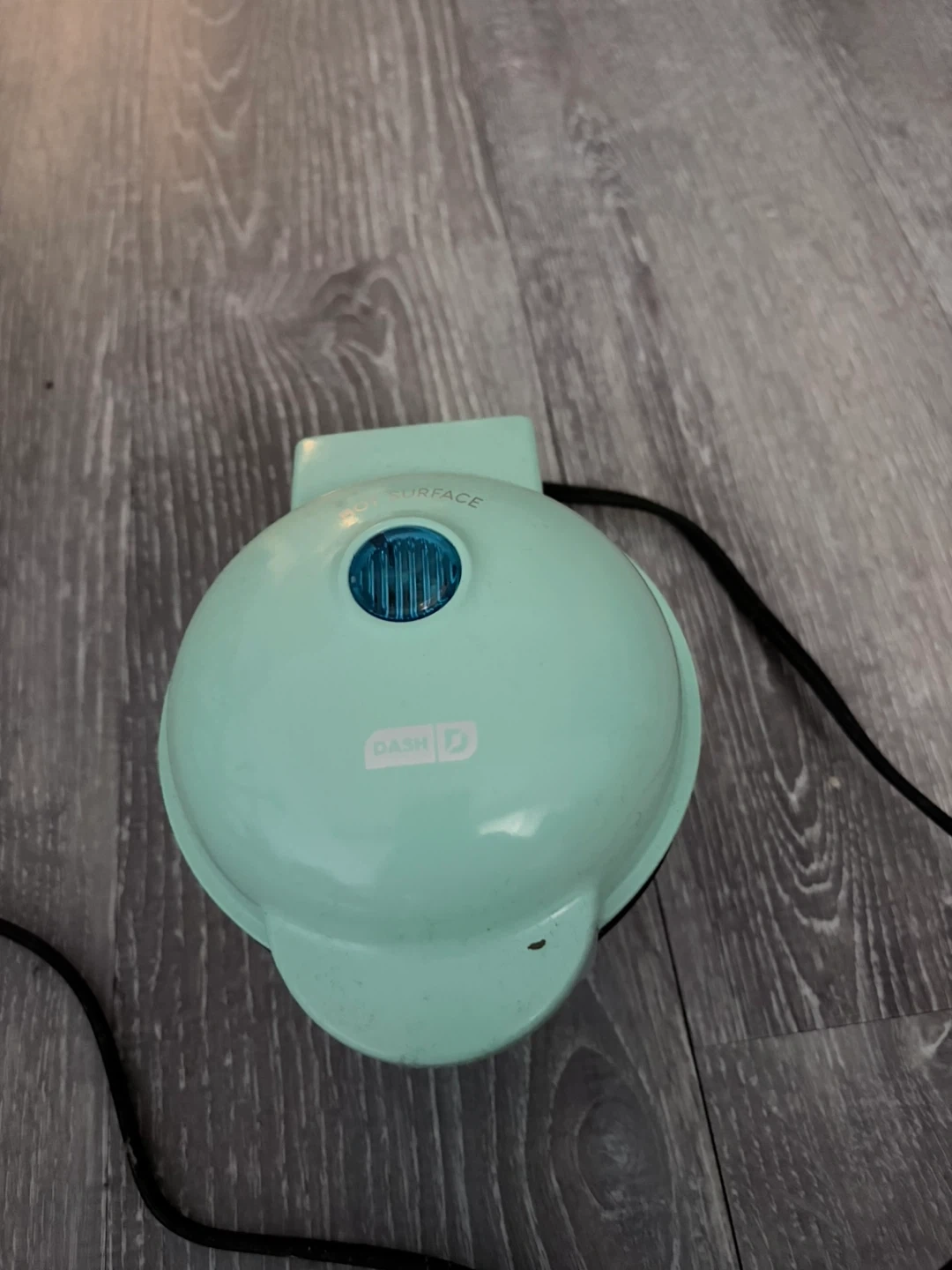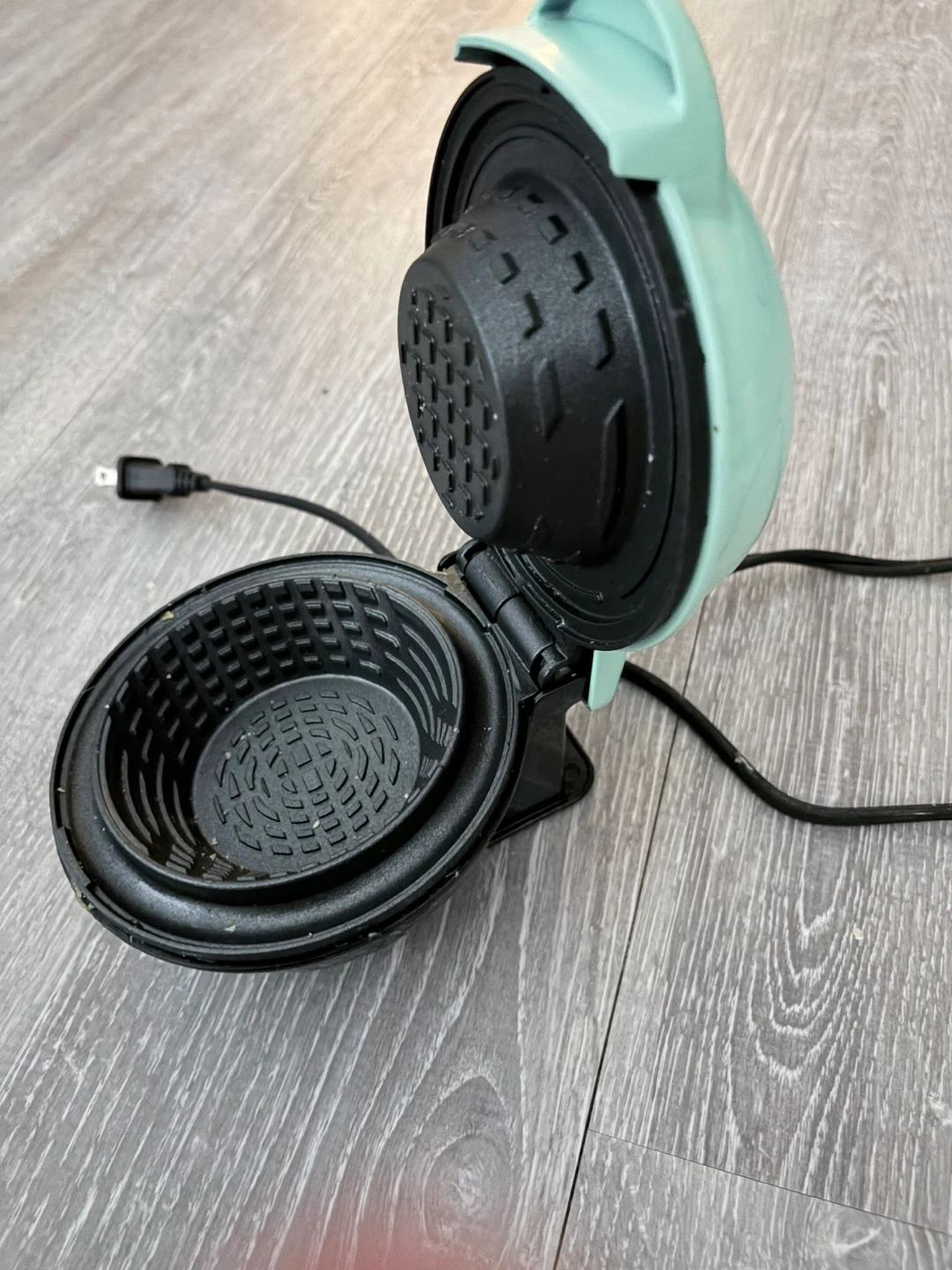 Whip up a quick waffle bowl with this aqua mini maker. It's compact and easy to use. Non-stick cooking surfaces make cleanup a breeze. Perfect for a single serving waffle bowls! Used once