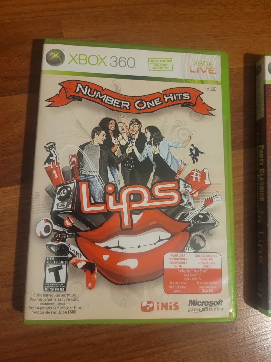 Get ready to sing your heart out with these Xbox 360 Lips games! This listing includes two titles: Lips: Number One Hits and Lips: Party Classics - 90s Party Classics Les Grands Classiques 80s. Both games are in used condition.