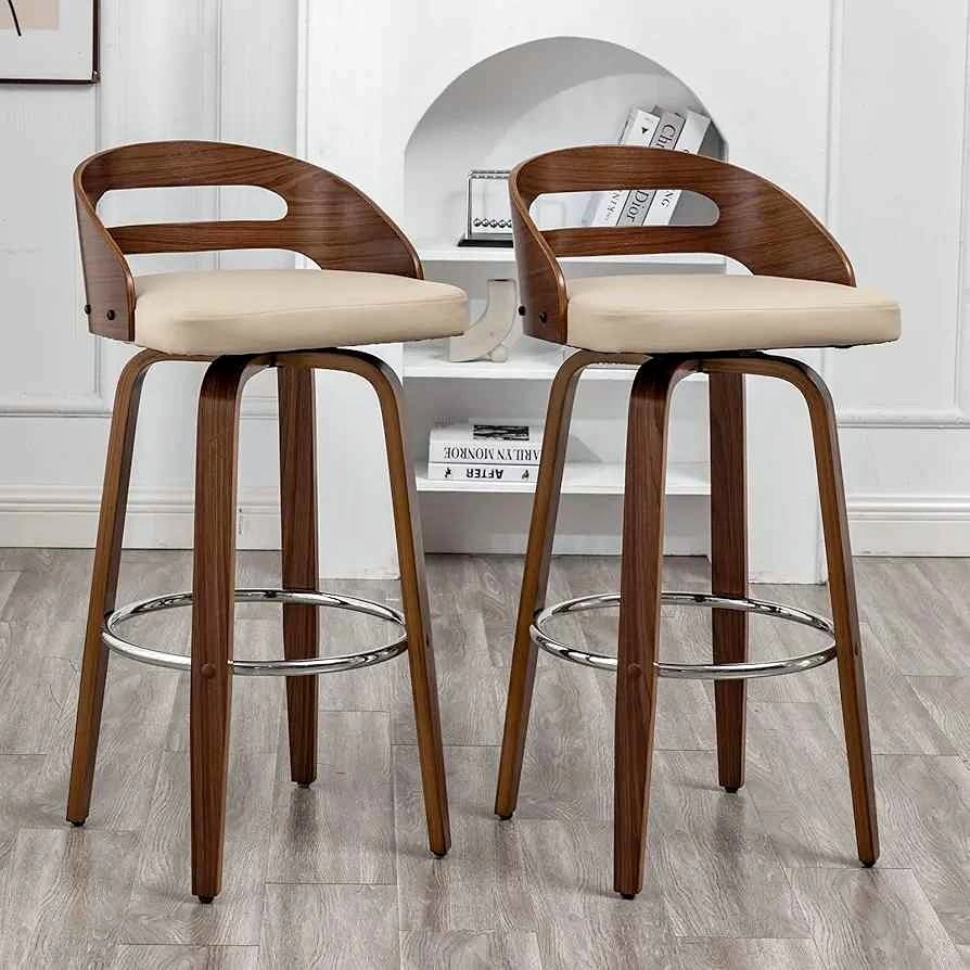 Our counter height bar stools feature a 360-degree swivel design for easy interaction, perfect for social settings. Sturdy wooden legs ensure stability with a refined walnut finish. Designed to improve posture and reduce back pain during long sittings, the ergonomic design keeps your spine aligned, minimizing strain on muscles and reducing pressure points for added comfort.