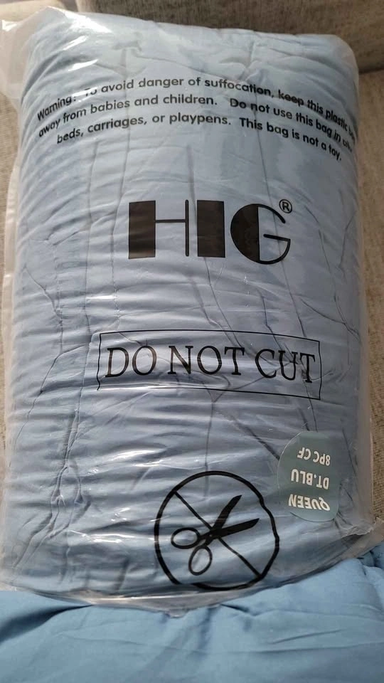 New item, open box. Queen size. This classic 8-piece bedding set in a bag has everything you need to create a comfortable and stylish space. All included in a single package, making it convenient and economical to transform the look of your room.
