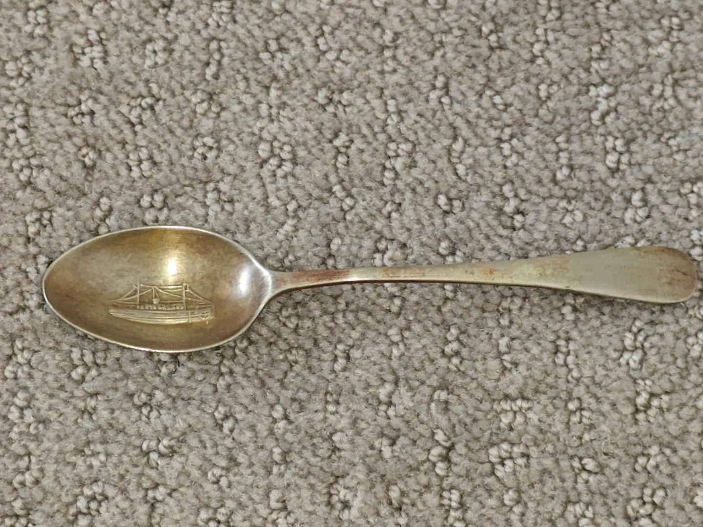Vintage EPNS Silver Plated Souvenir Teaspoon Emboss Ship Design