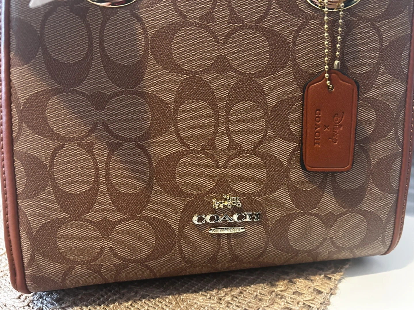 This is a Coach signature canvas tote bag. It features brown canvas with the signature 'C' pattern and brown leather trim. The interior has a zippered compartment.