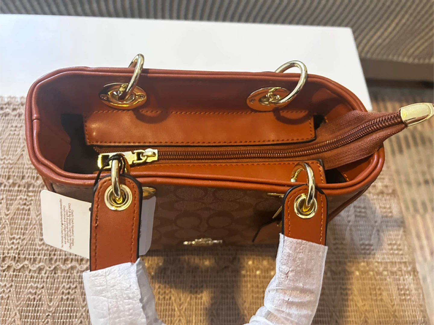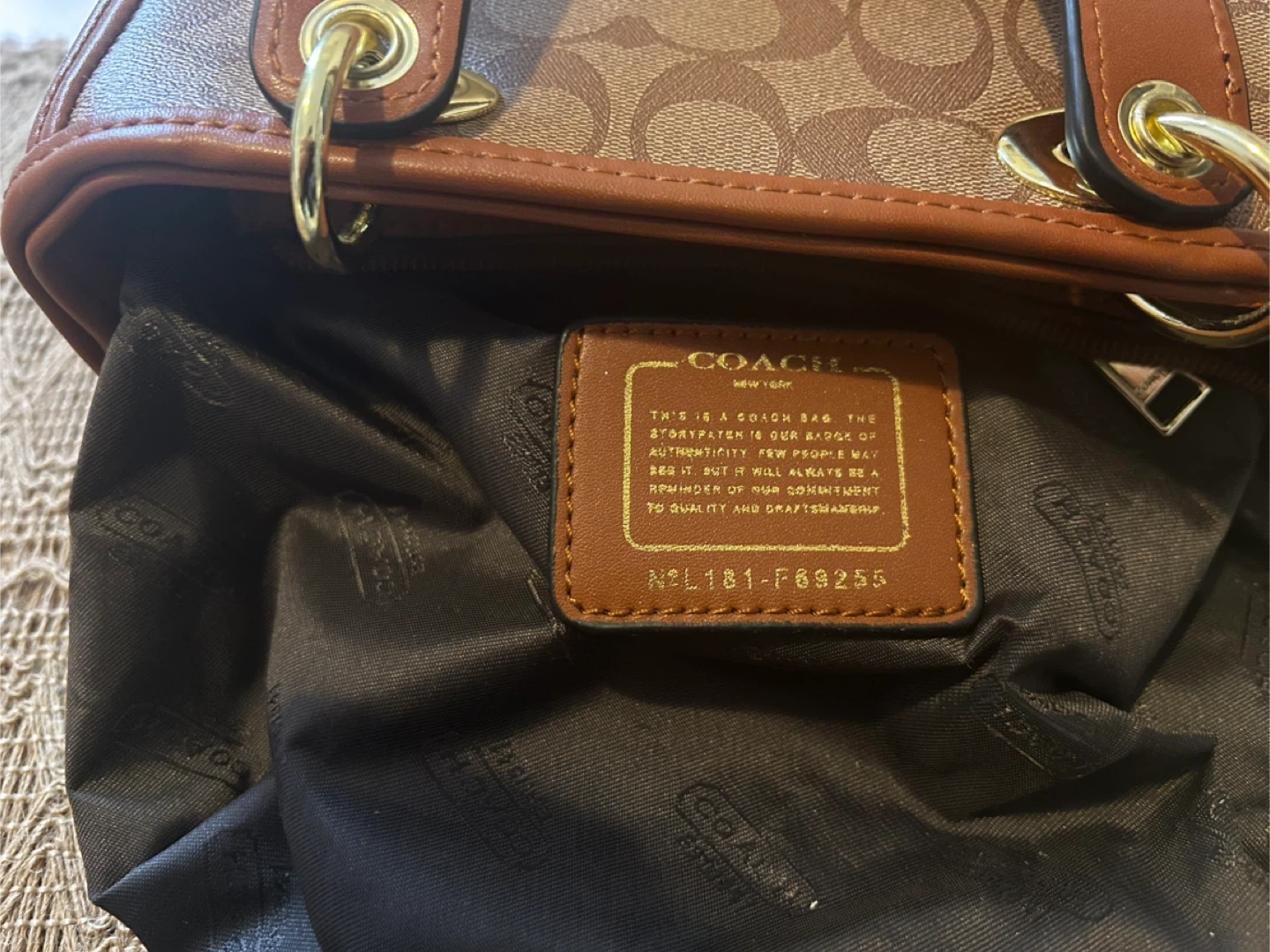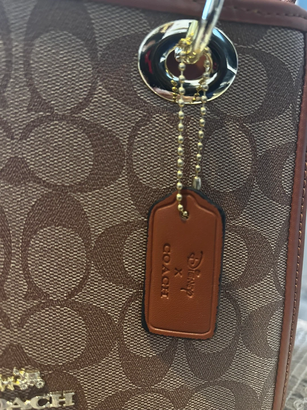 This is a Coach signature canvas tote bag. It features brown canvas with the signature 'C' pattern and brown leather trim. The interior has a zippered compartment.