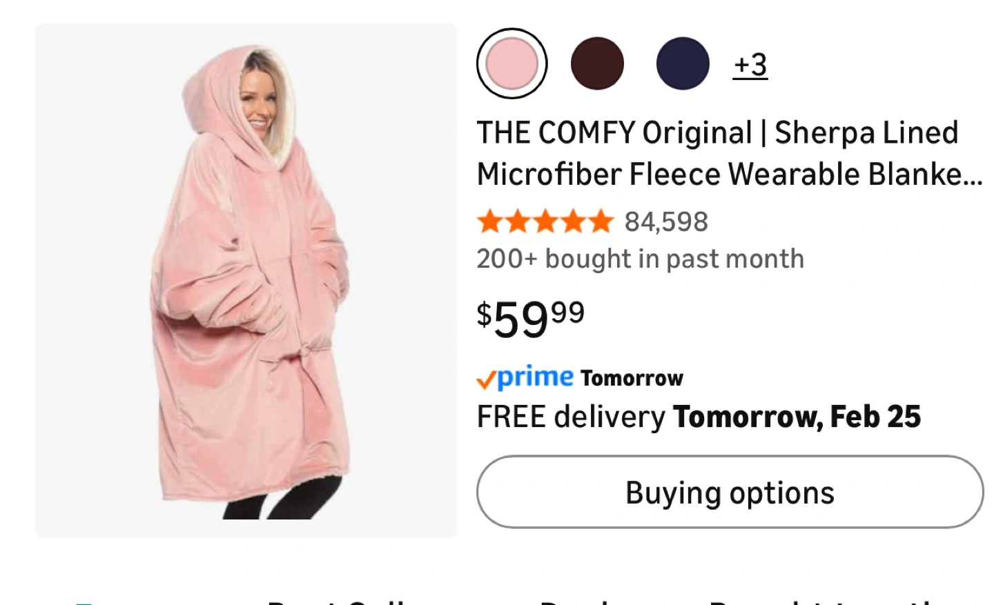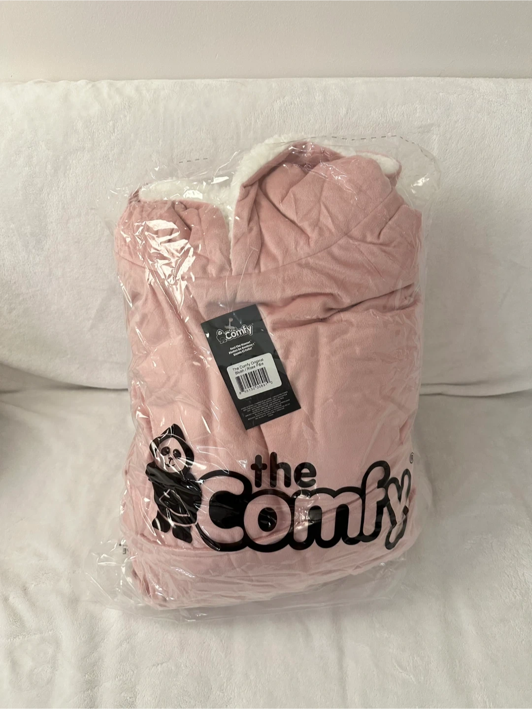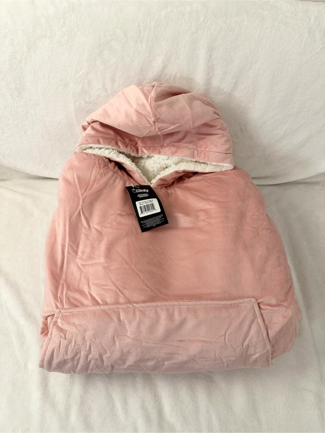 It's a The Comfy wearable blanket hoodie in pink. Super soft plush material with sherpa lining inside. Adult one size fits most. Comes with a large front pocket.