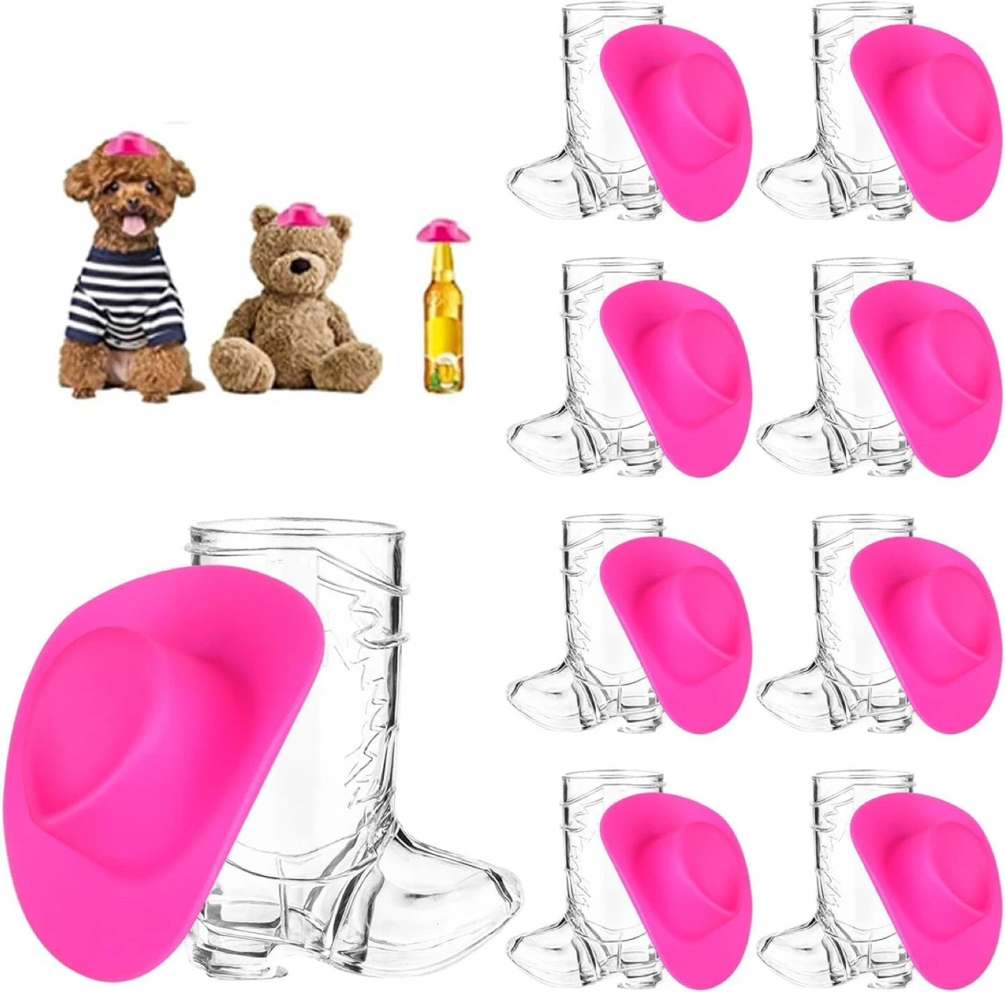 Set of 20 pcs: 10 Pink Cowboy Hats + 10 Shot Glass Toppers