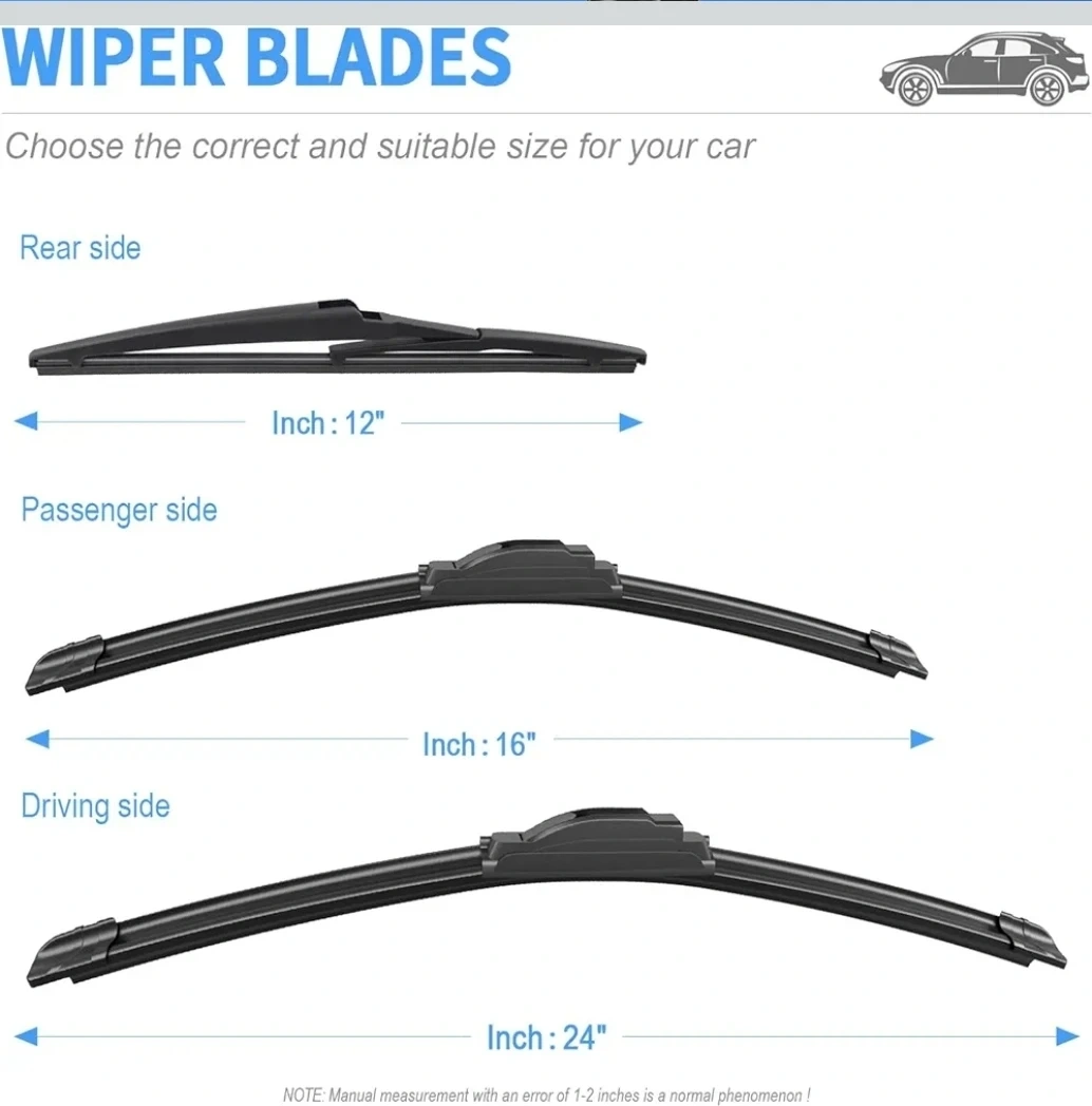 24"+16"+12" Wiper Blades for Toyota RAV4 2006-2012 (Set of 3)
