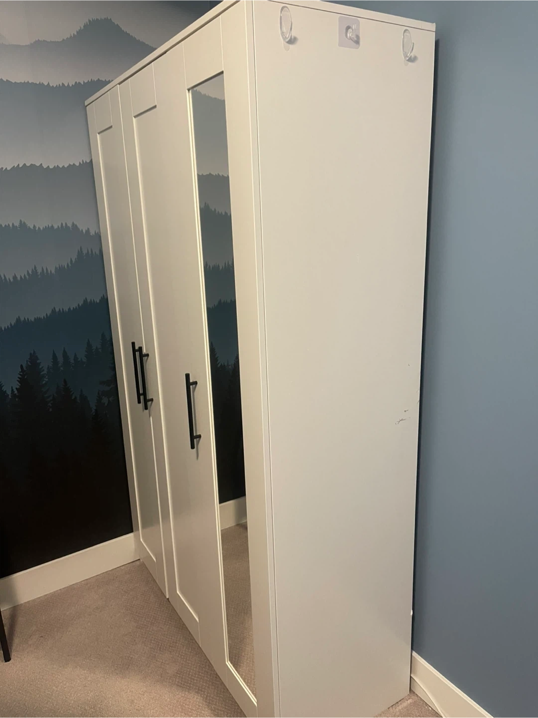 Good condition - the right side panel has a few small scratches from moving (photo included), and the bottom sides have minor damage from pushing it across carpet. Otherwise in excellent condition.