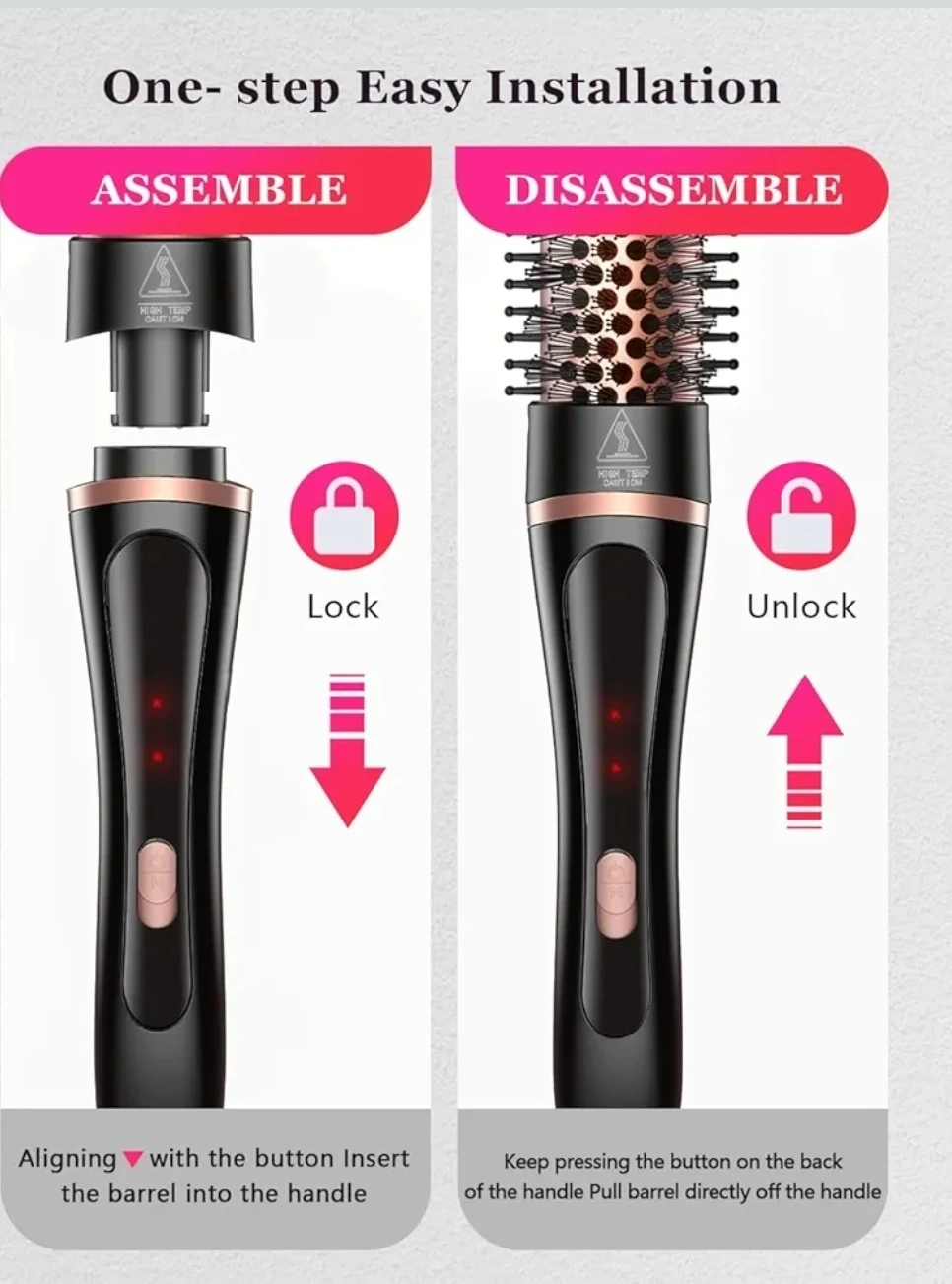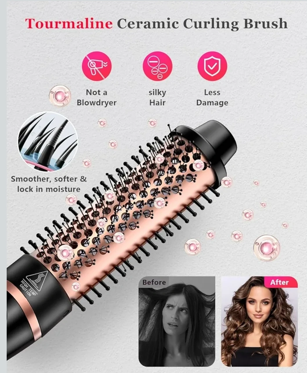 This is a 5-in-1 curling iron and thermal brush set with interchangeable ceramic barrels. It features tourmaline ceramic technology for frizz-free styles with shine. It includes a variety of barrel sizes for multiple hairstyles.