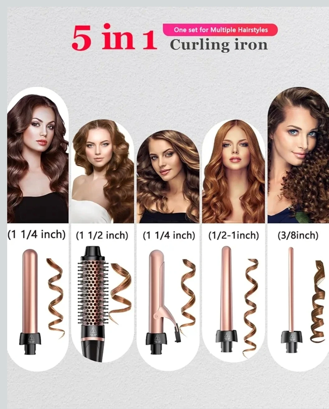 5-in-1 Curling Iron & Thermal Brush Set
