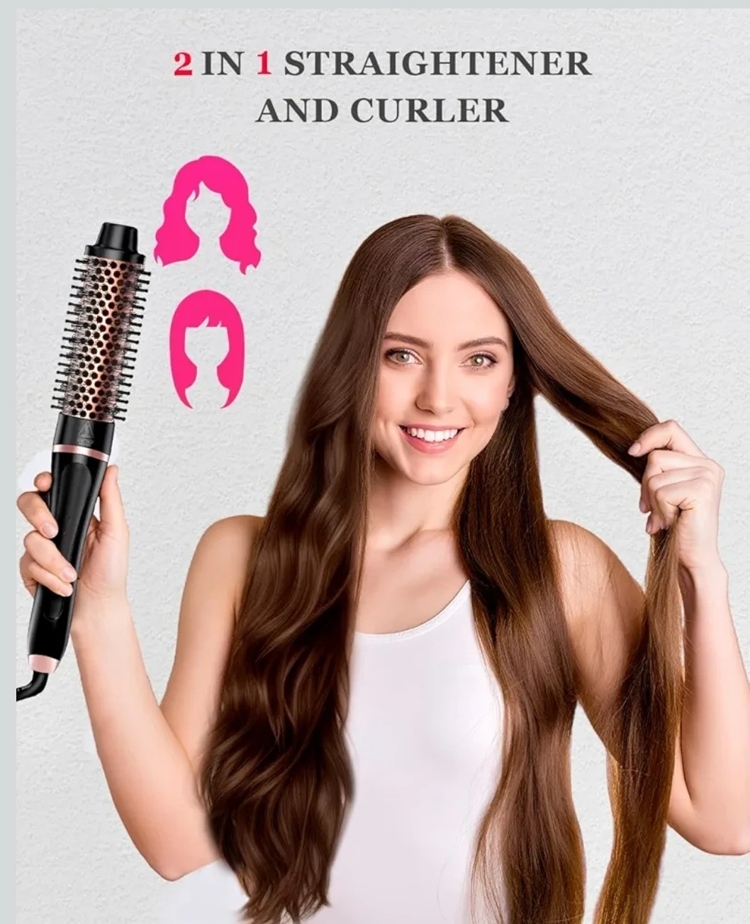 This is a 5-in-1 curling iron and thermal brush set with interchangeable ceramic barrels. It features tourmaline ceramic technology for frizz-free styles with shine. It includes a variety of barrel sizes for multiple hairstyles.
