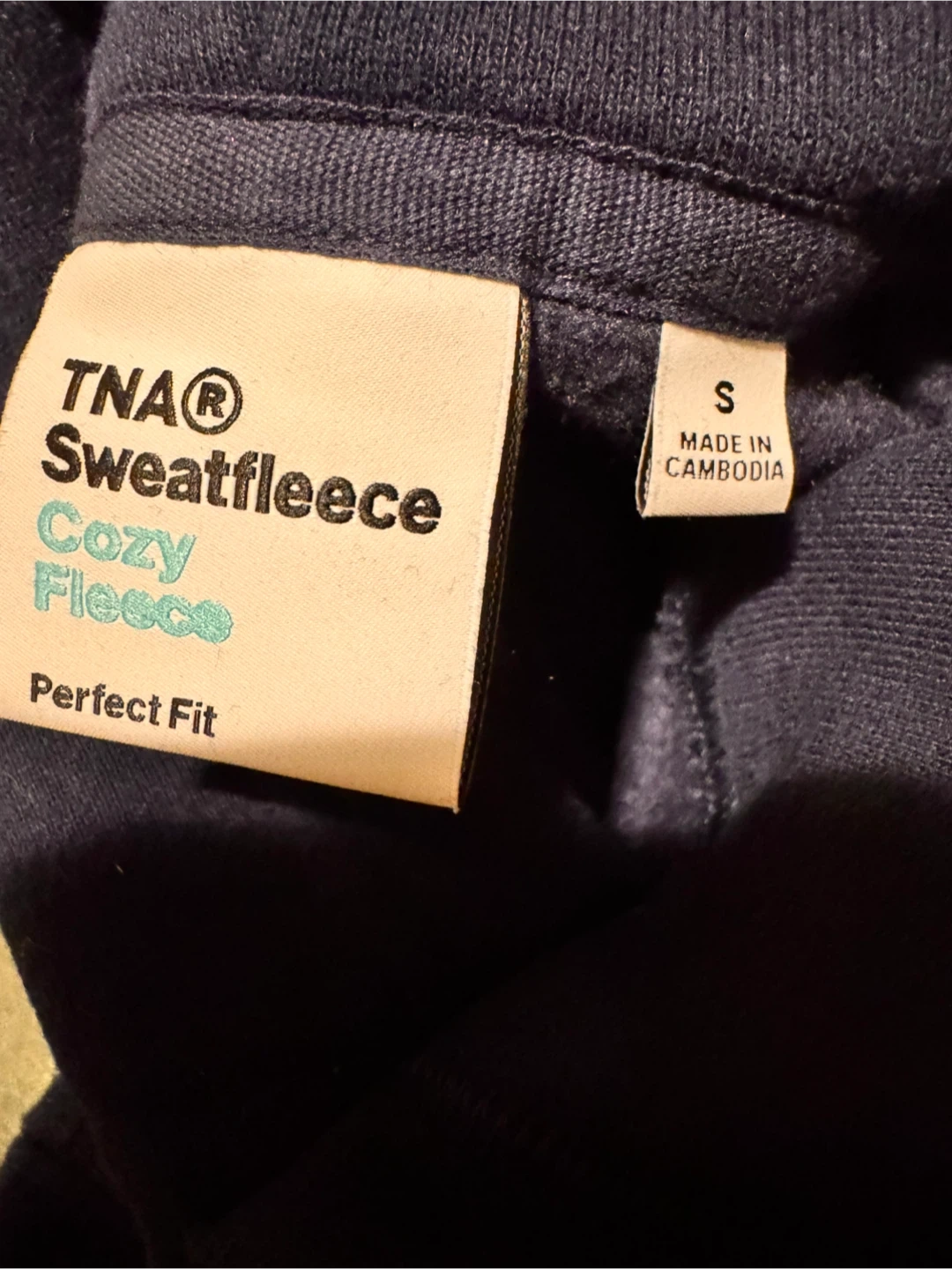 This TNA hooded sweatshirt is made from Cozy Fleece material. It's a size small with a perfect fit. This comfy hoodie is great for everyday wear.