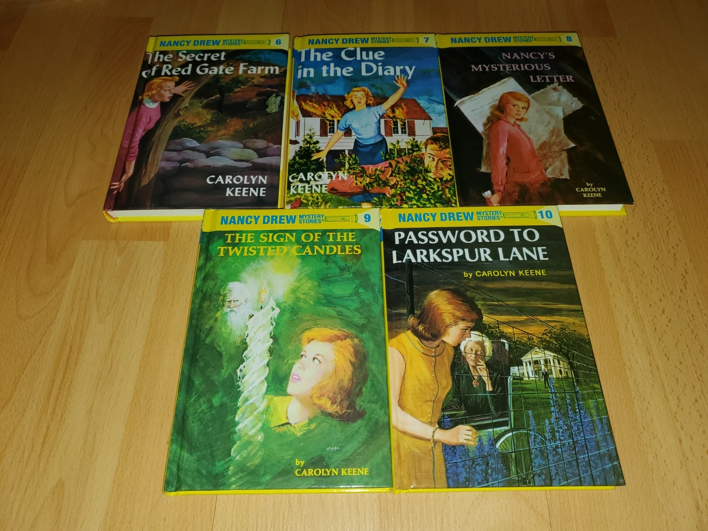 A set of 10 classic Nancy Drew Mystery Stories by Carolyn Keene.