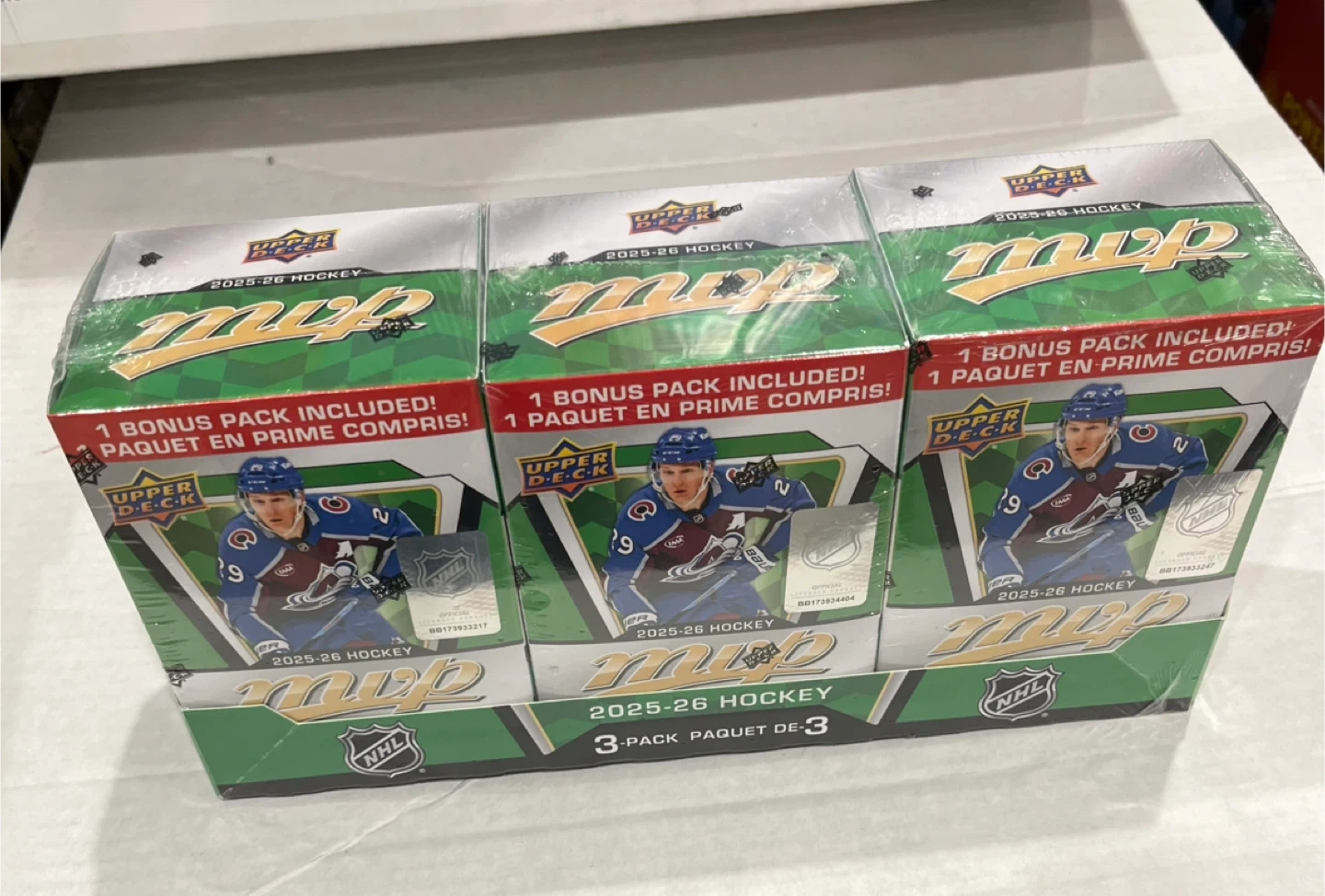 Buy & SellUpper Deck 2025-26 MVP Hockey 3-Pack BoxUpper Deck 2025-26 MVP Hockey 3-Pack Box$56This is a new, sealed Upper Deck 2025-26 MVP Hockey 3-pack box. Collect the first rookies cards of the season!WHERE TO MEETCheck LocationView MapSELLERNelaChurchill624 reviews0 chats·0 favorites·1 viewsSEND CHAT TO SELLERHi Nela! I’m interested in your listing.Hi Nela! I’m interested in your listing.Get the Karrot app to chatSign In to chat