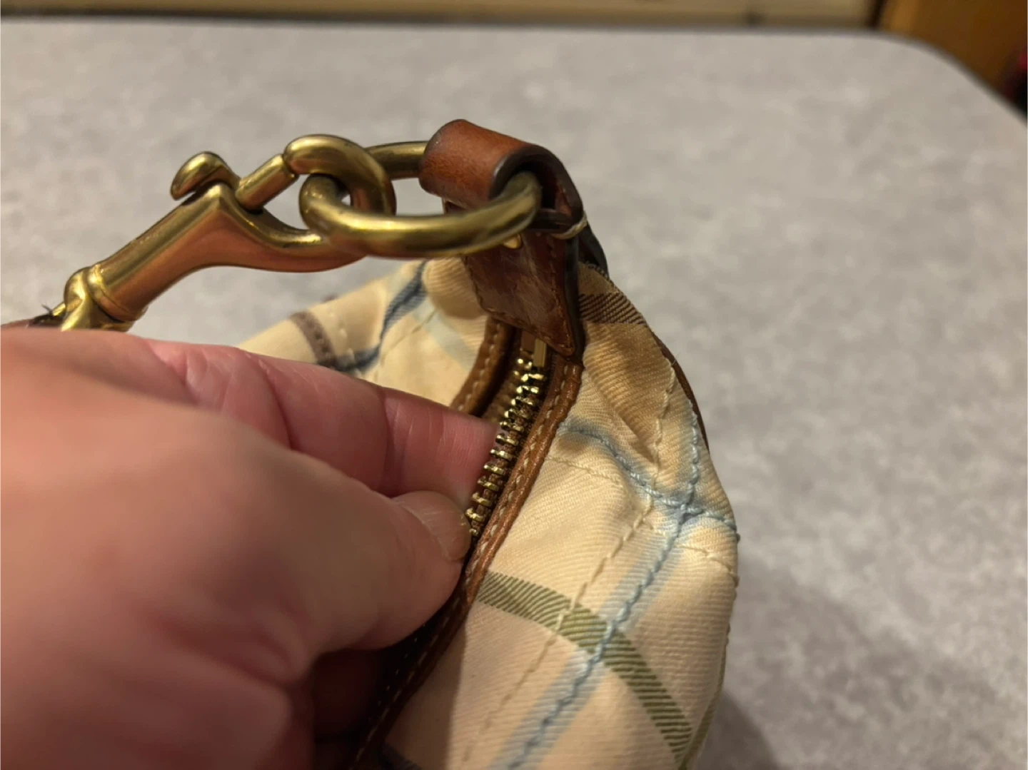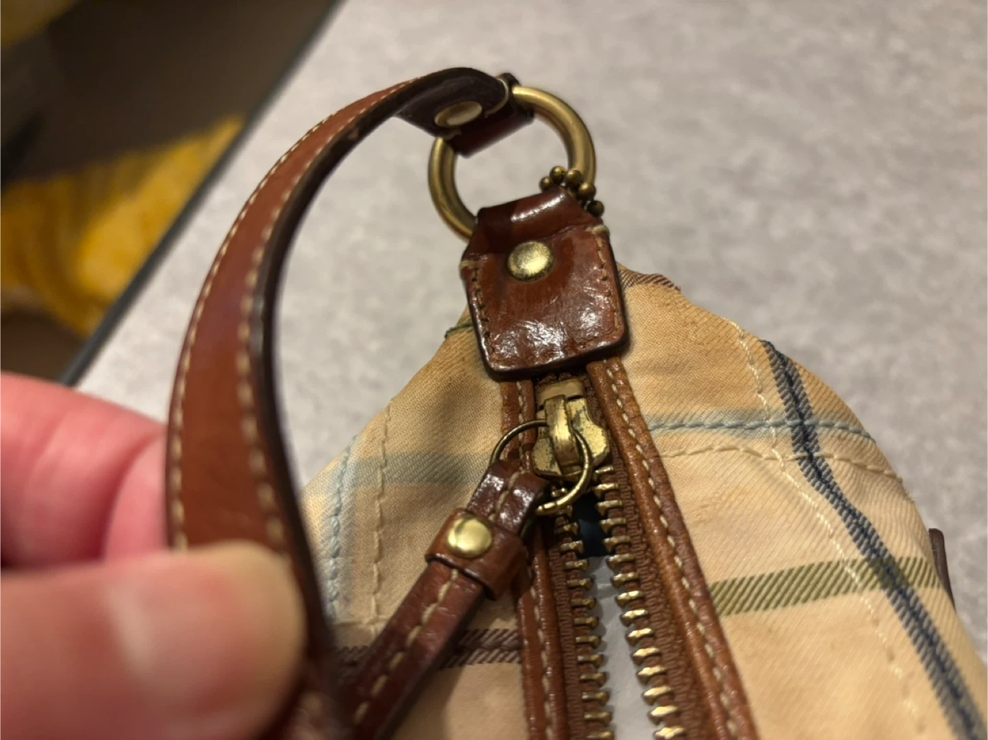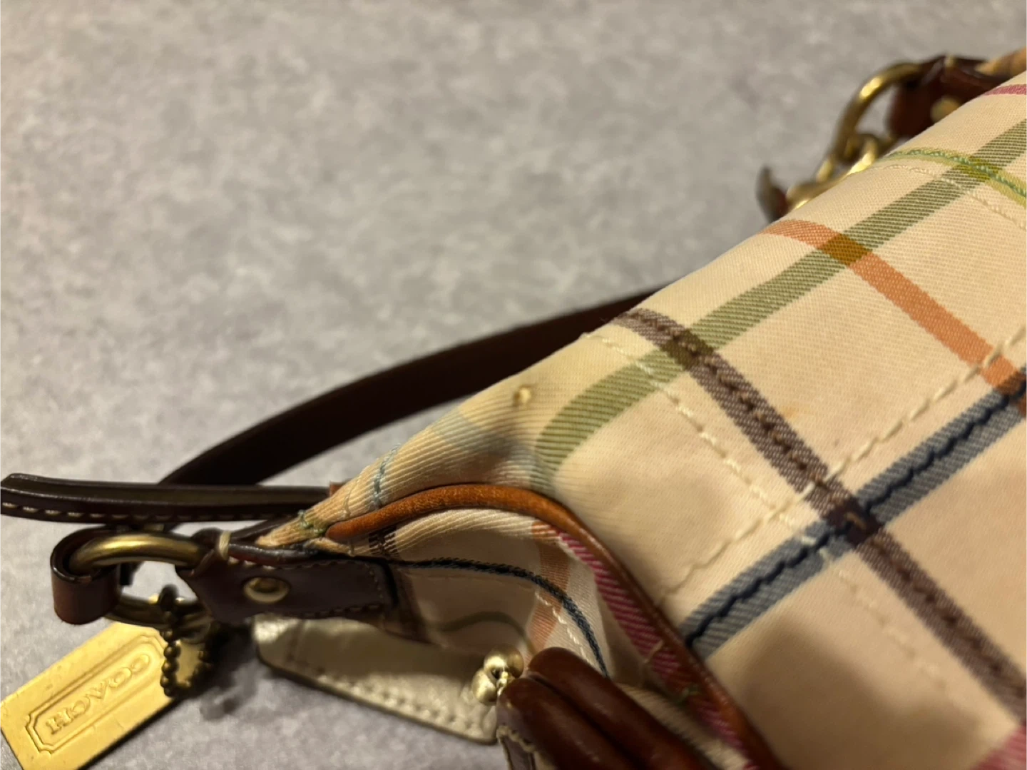 Coach Multicolor Plaid Canvas & Leather Wristlet Bag