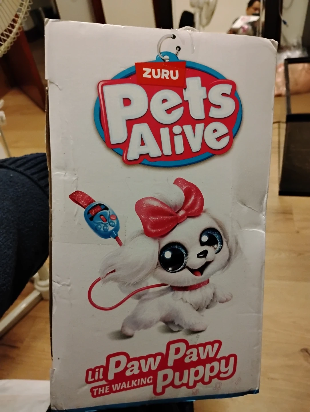 This Lil' Paw Paw The Walking Puppy from ZURU Pets Alive is ready to pounce! It barks, whimpers, walks, and wiggles its tail on command. Includes a matching collar and leash. Recommended for ages 3 and up.