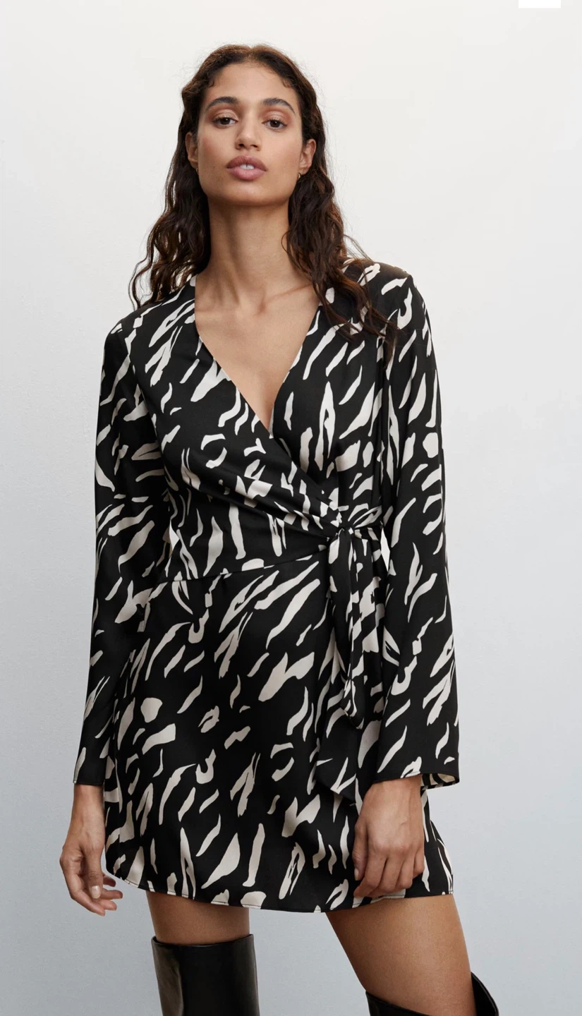 MNG Women's Black & White Zebra Print Wrap Dress - Size S