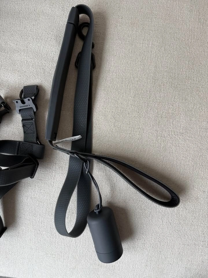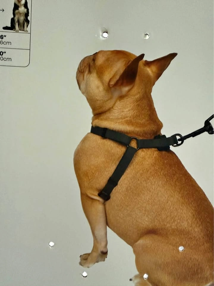 Black dog harness and leash set. Glows in the dark, water resistant, has a textured pattern, and metal closure. Feel free to message if you have any questions!