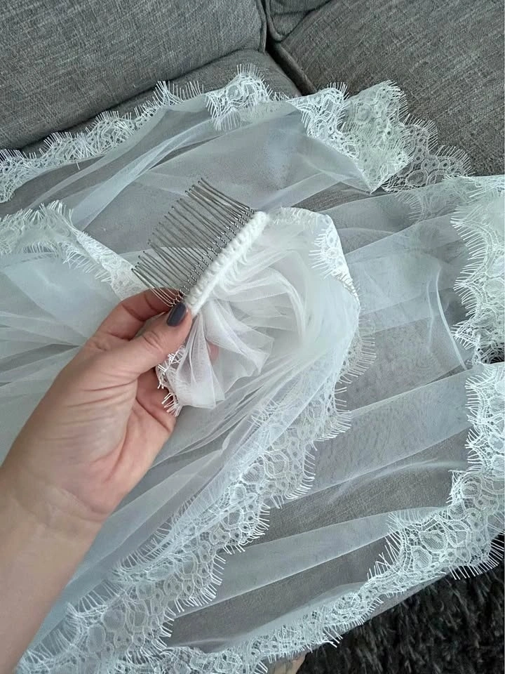 New and flawless. Fingertip length. Off white and ivory with comb sewn in. Please respect pricing.
