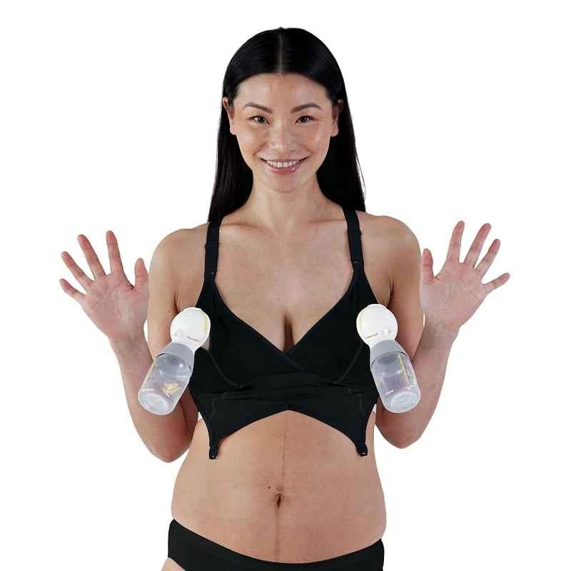 This bra features a patent-pending double-layer design that lets you pump and breastfeed easily without changing bras. Ideal for on-the-go moms, nighttime feeds, or hands-free pumping.