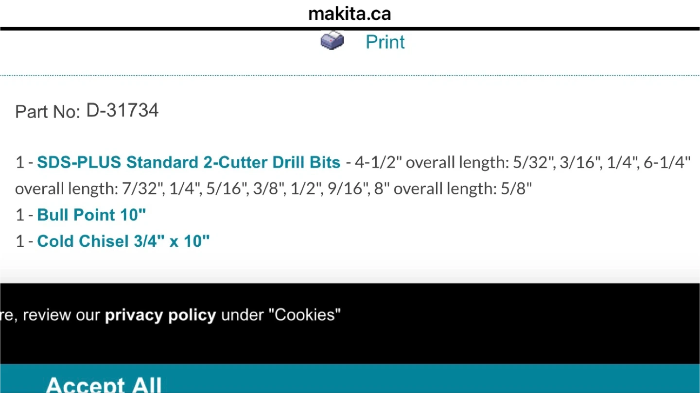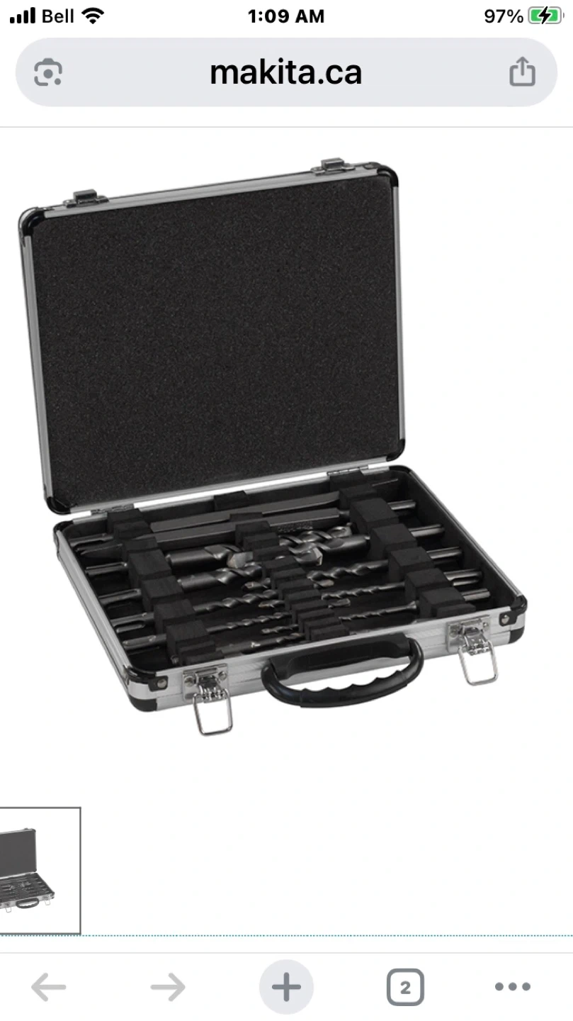 This Makita drill bit set includes 13 pieces of SDS-PLUS bits and chisels. It comes in a durable carrying case for easy transport and storage. Bits include standard 2-cutter and bull point types.