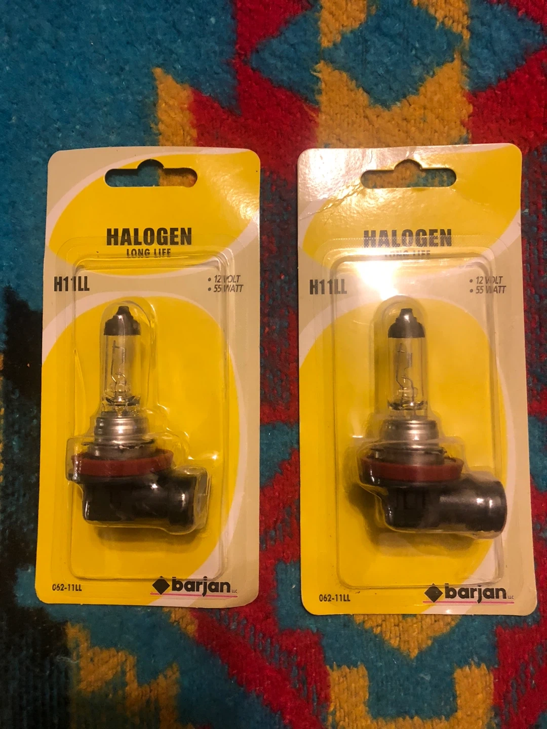 Selling two Barjan H11LL halogen headlight bulbs. These are long life bulbs rated for 12 volt and 55 watt. They're still in their original packaging. They're useful for replacing burnt out headlights on many vehicles.