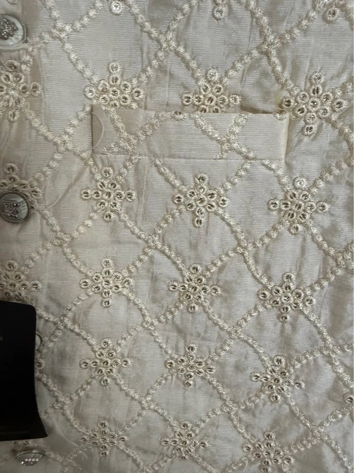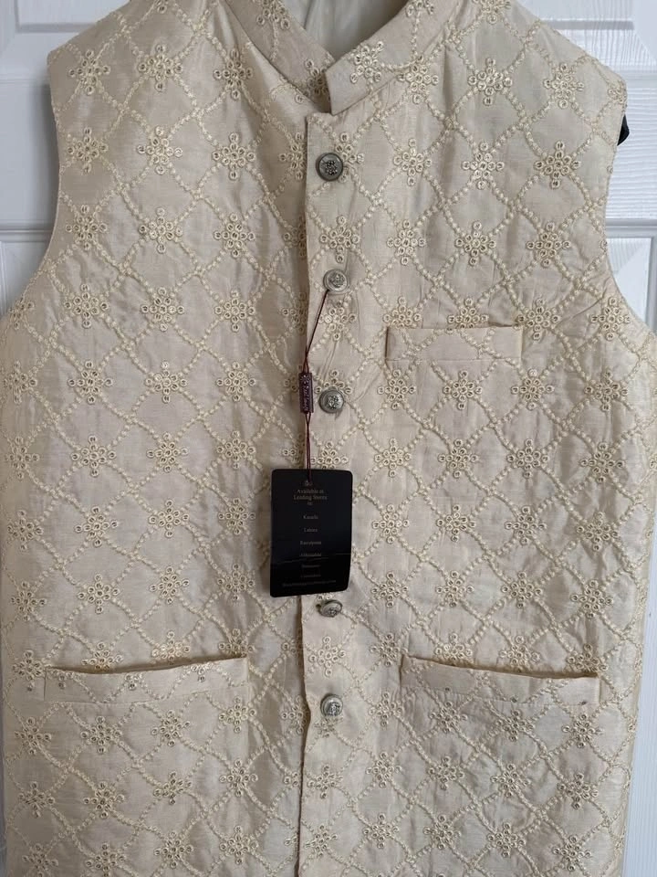 Selling a men's Indian waistcoat, great for weddings or functions. Latest designs. It's a slim fit, so it didn't fit me well. It would be suitable for someone slim or with a medium build. The tag says large, but it fits more like a medium.
