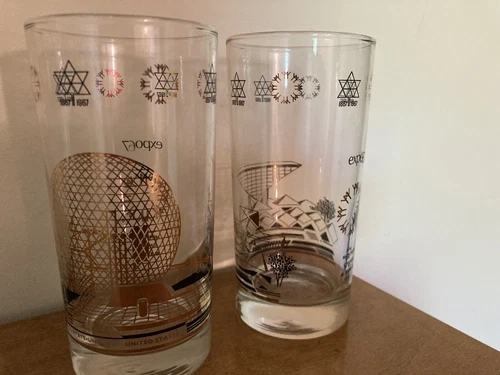 These vintage beer glasses commemorate the German Pavilion at Expo 67 in Montreal, Canada. Made in Germany, it showcases Germany's rich cultural heritage. This glass features a colorful design and is in excellent condition, ready to be used or displayed. Whether you are a beer enthusiast or a collector of unique items, this Expo 67 beer glass is sure to impress.