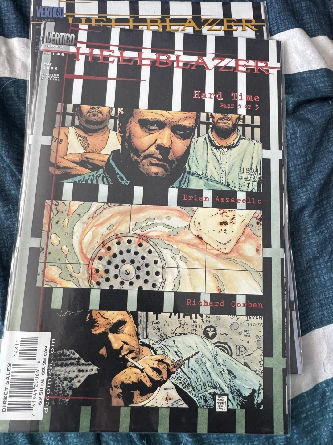A collection of John Constantine Hellblazer comic books. Includes issues like "Freezes Over" and "Hard Time". Vertigo Comics publication.