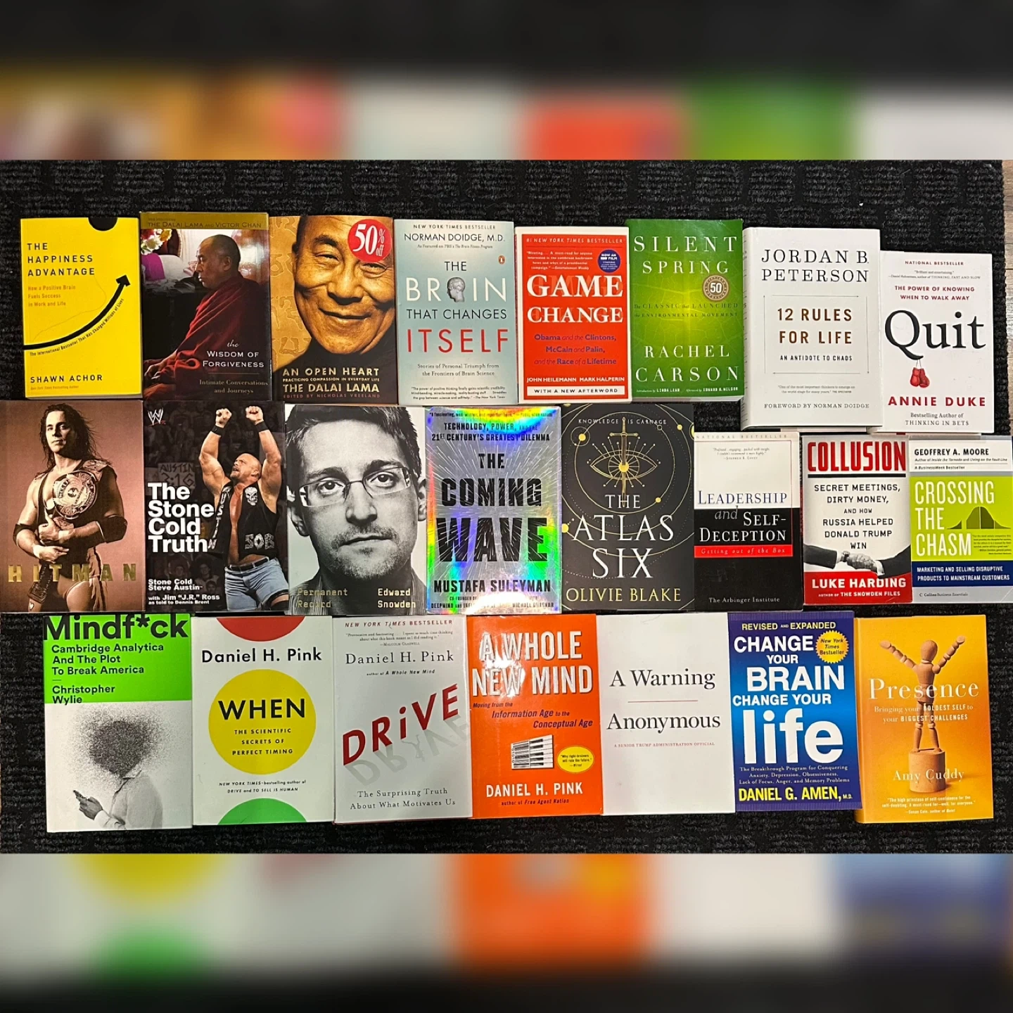 Books: Happiness, Forgiveness, Drive, Presense,..