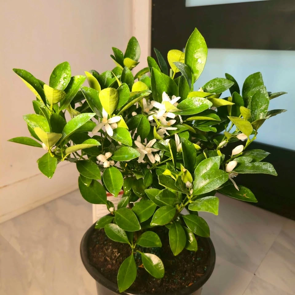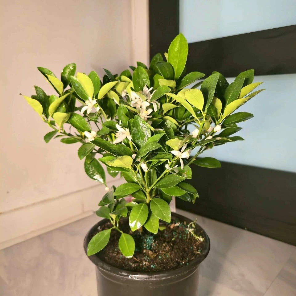 Real Lime Tree with white flowers that smell like Jasmine / Sampaguita, very floral and relaxing. This Lime Tree can grow indoors during the winter and placed outside for the summer. Repotting immediately is not necessary. In an 8" inch black pot, it stands 1.6' feet tall and is 1.2' feet wide. Needs a bright and warm location indoors and weekly watering. FREE LOCAL DELIVERY / PICK-UP!