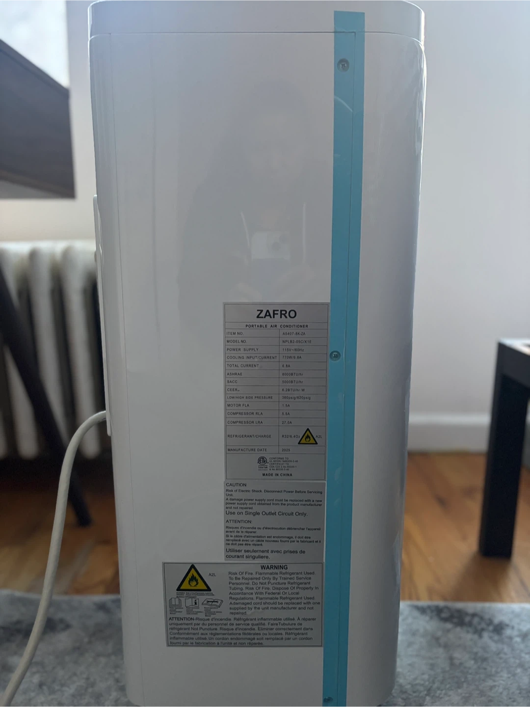 8,000 BTU Compact & Quiet Portable Air Conditioner