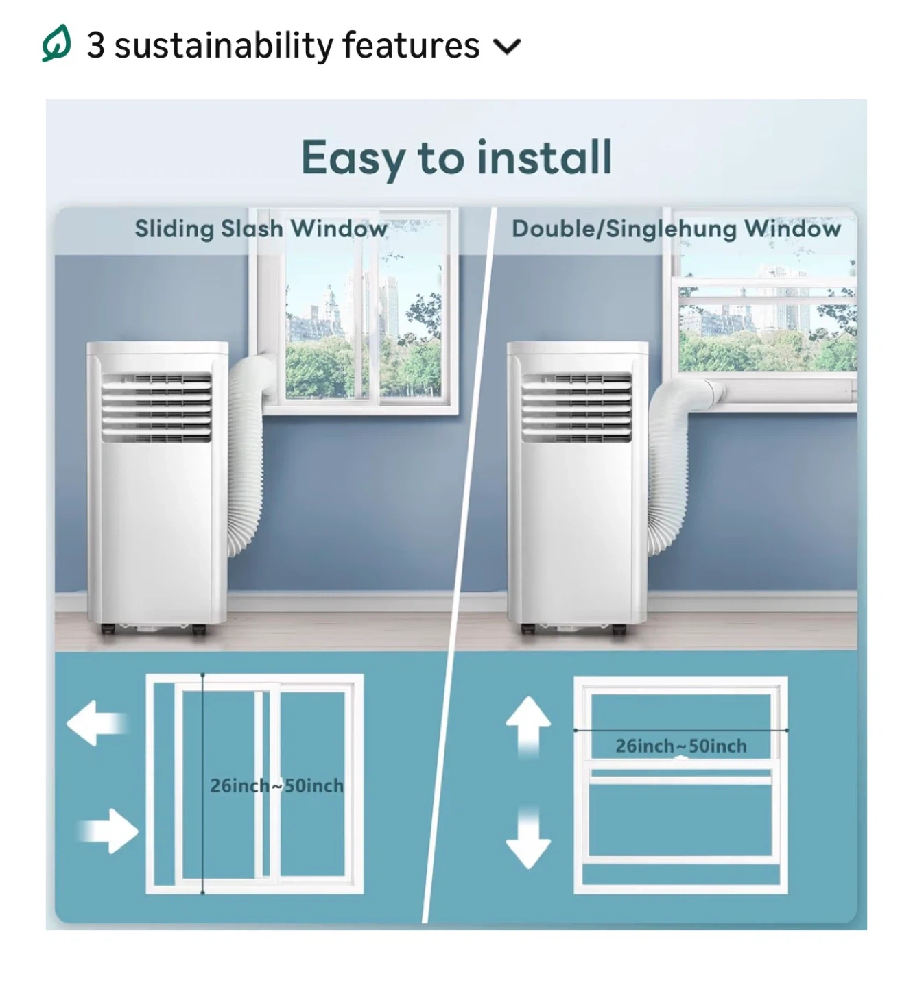 3-in-1 Design :This portable air conditioners combines cooling, fan, dehumidification, and sleep modes. Efficiently cools in summer, rapidly dehumidifies during humid seasons, and operates as a quiet fan daily. The sleep mode intelligently adjusts temperature and fan speed, creating a comfortable environment day and night while saving space.