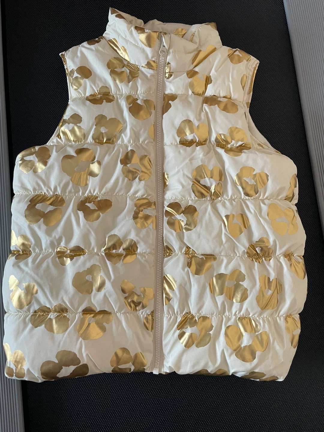 White Puffer Vest with Gold Floral Print