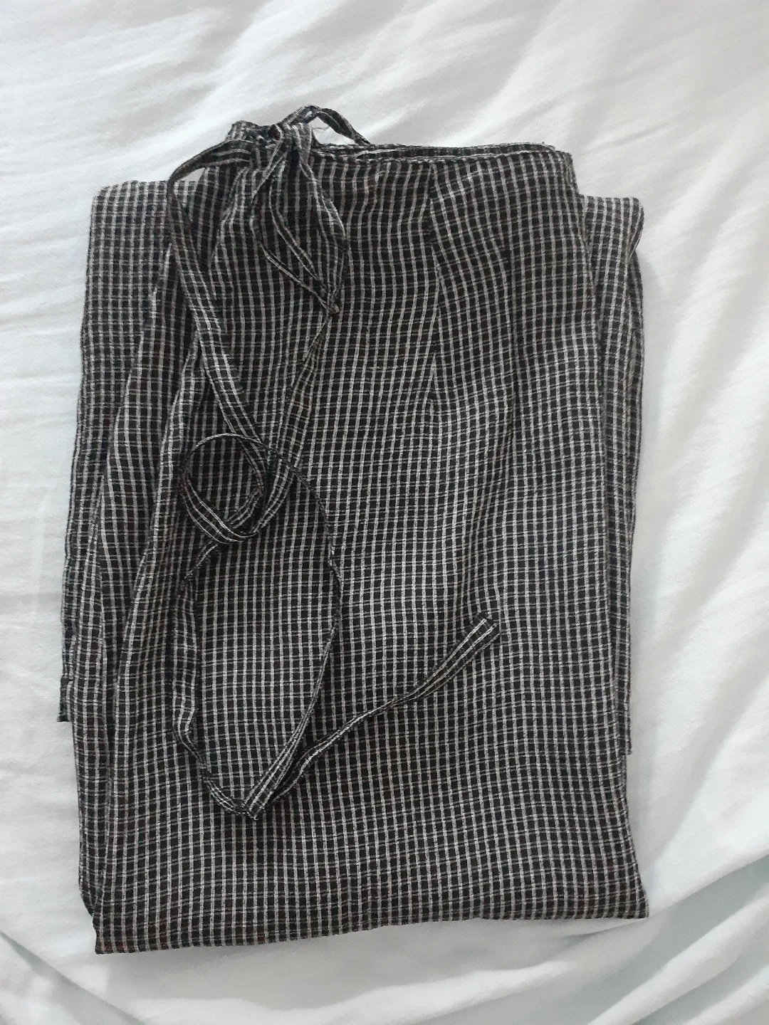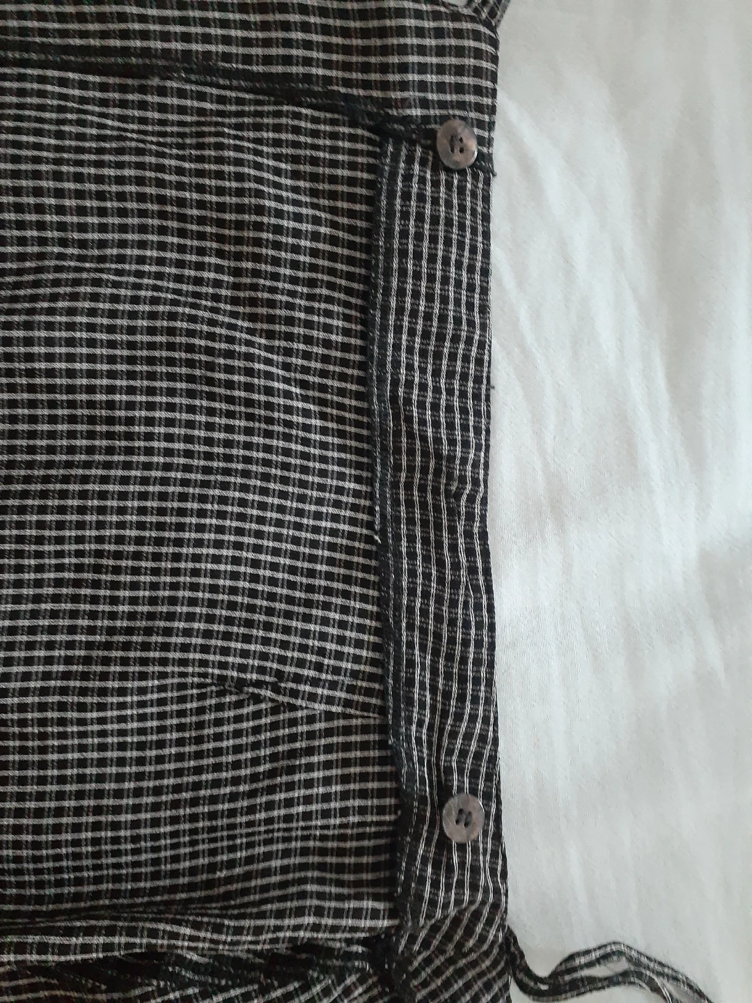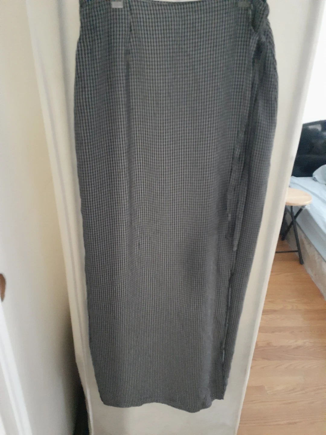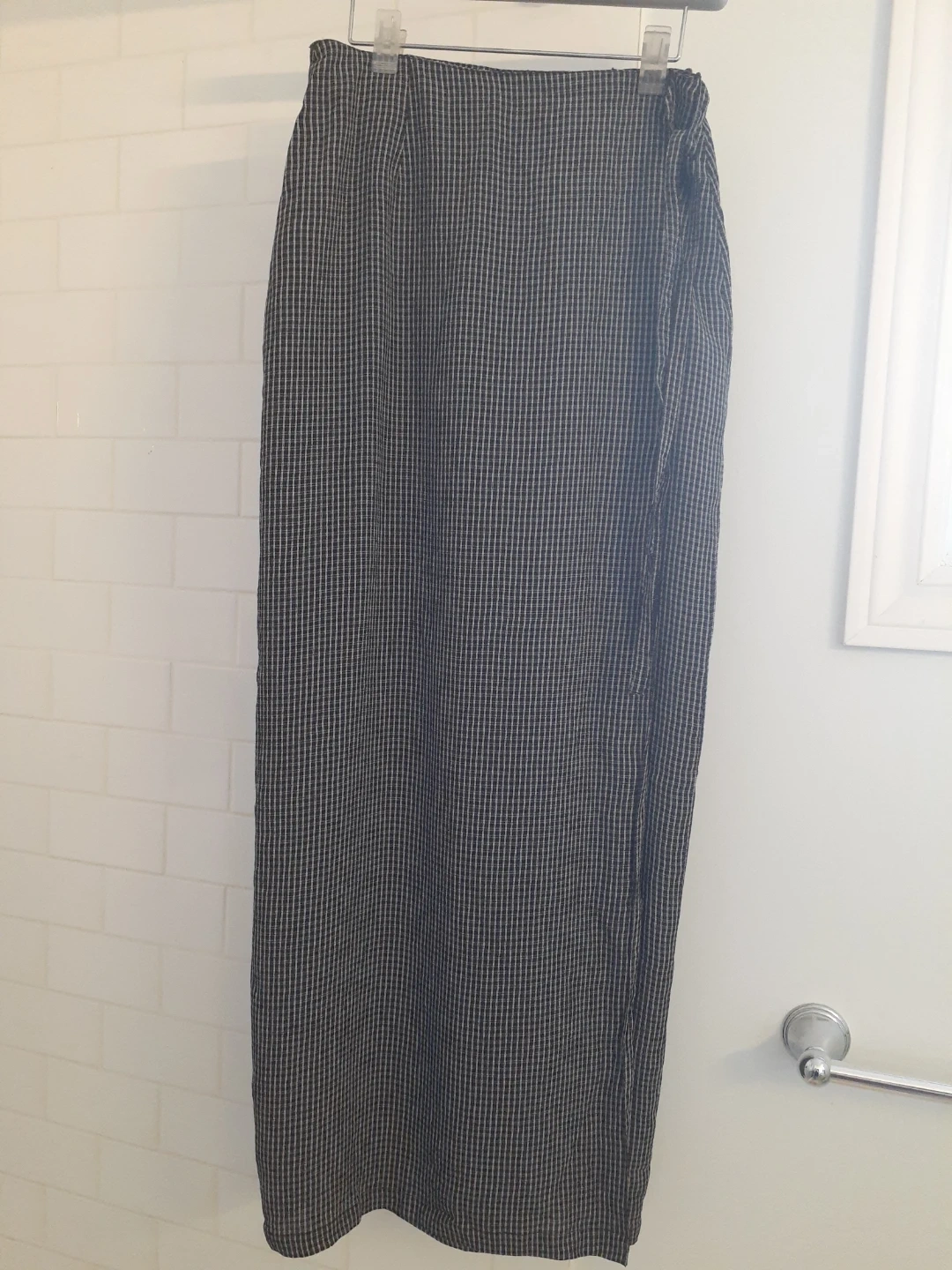 Vintage Le Chateau wrap skirt, in a black and white gingham pattern. The skirt features 2 buttons closure, with a tie string on the side ensuring a secure and comfortable fit.