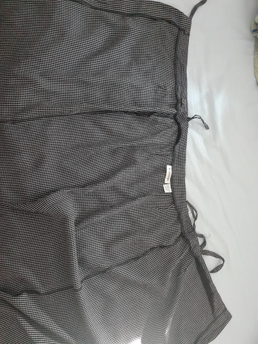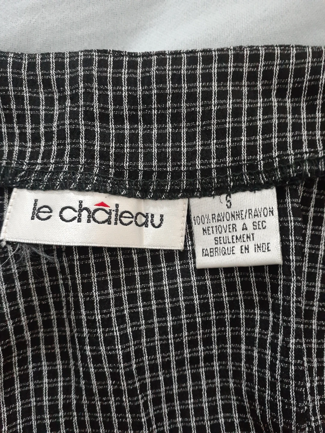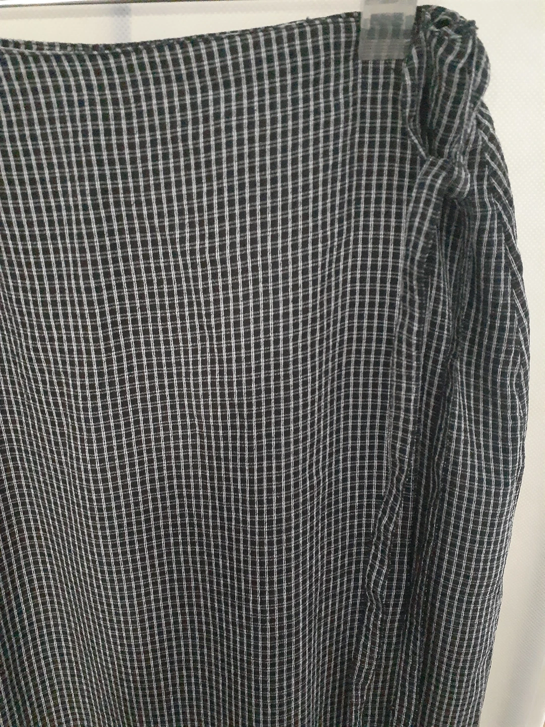 Vintage Le Chateau wrap skirt, in a black and white gingham pattern. The skirt features 2 buttons closure, with a tie string on the side ensuring a secure and comfortable fit.