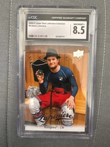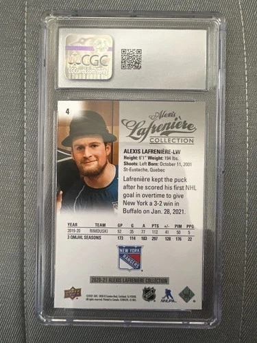 Capture a piece of ice hockey history with this 2020-21 Upper Deck Alexis Lafreniere Collection card. Featuring the highly touted New York Rangers prospect, this card is a must-have for fans and collectors alike. The card is part of the esteemed Upper Deck series, known for its quality and prestige in the sports trading card community. This original card showcases Lafreniere in his debut season, offering a snapshot of his early career. It's printed in English and adheres to the standard card size, fitting seamlessly into your collection. Celebrate the legacy of one of hockey's promising talents with this iconic memorabilia from the 2020-21 season.
