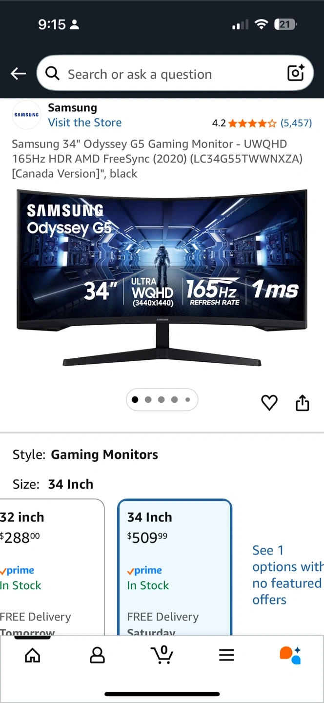 Samsung 34" Odyssey G5 Curved Gaming Monitor