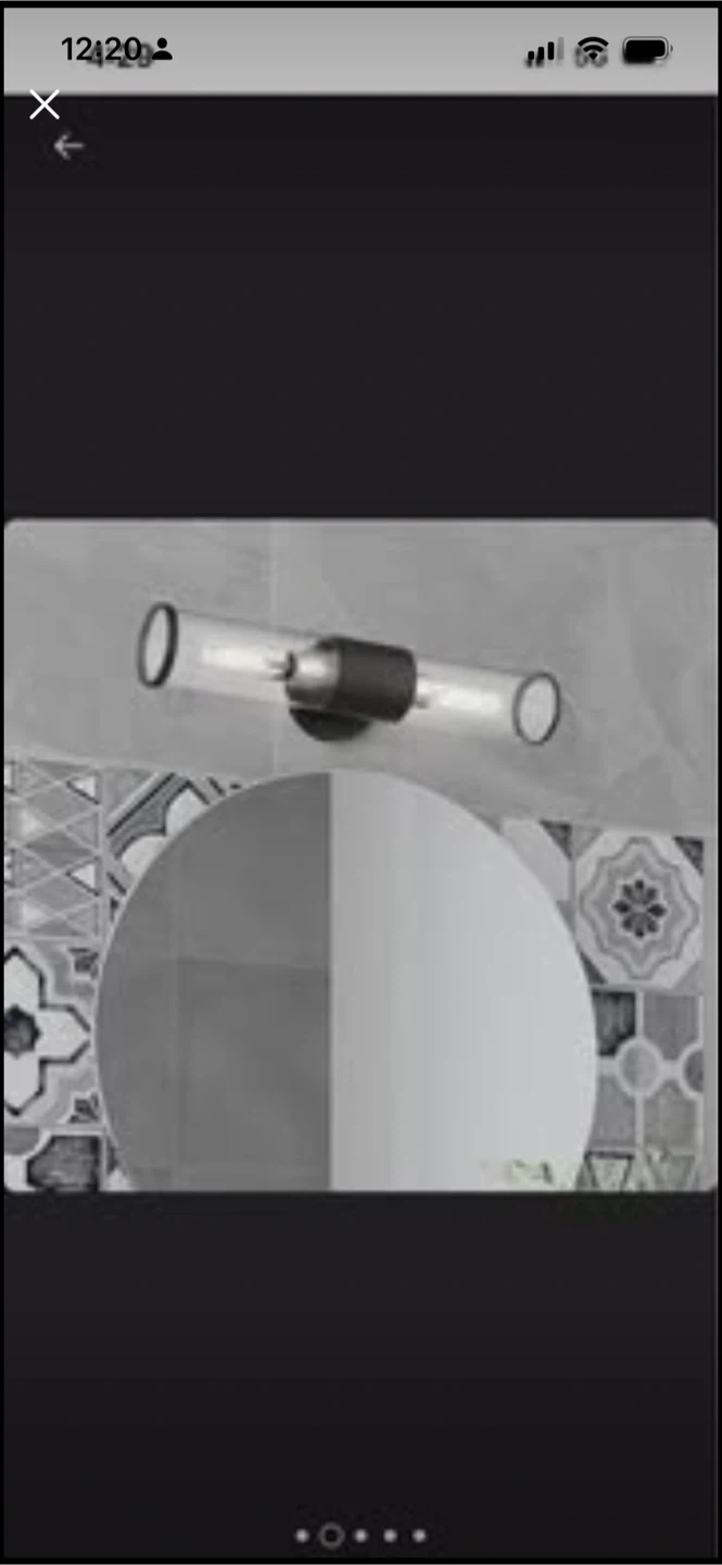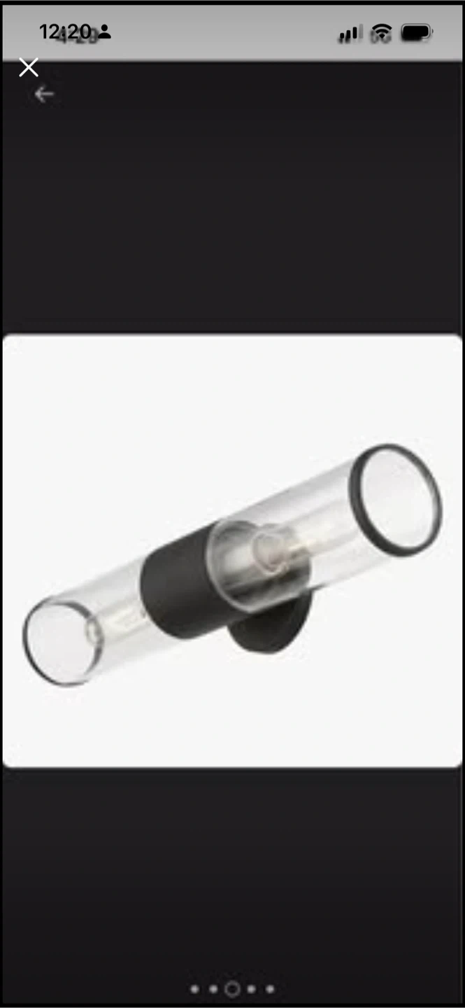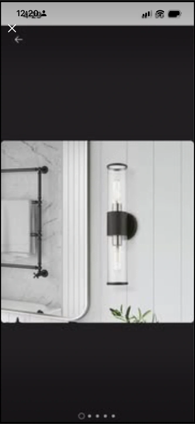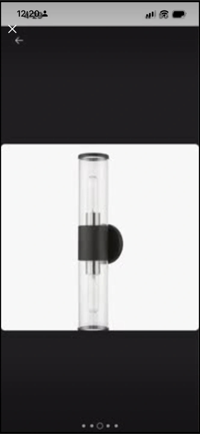 This modern wall sconce features a clear glass cylinder shade with a black accent band. It's designed for two bulbs, casting light upwards and downwards. Perfect for adding ambient lighting to a hallway or bathroom.