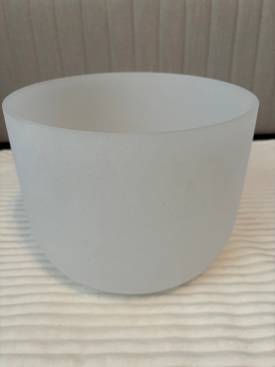 11-inch Frosted Quartz Crystal Singing Bowl. This is a quality instrument tuned to 432 Hz, producing a precise E4 (approx. 324 Hz) frequency.